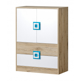 Komoda NICO 09, Svetlý Dub/Biela/Tyrkysová