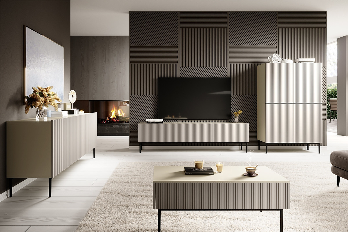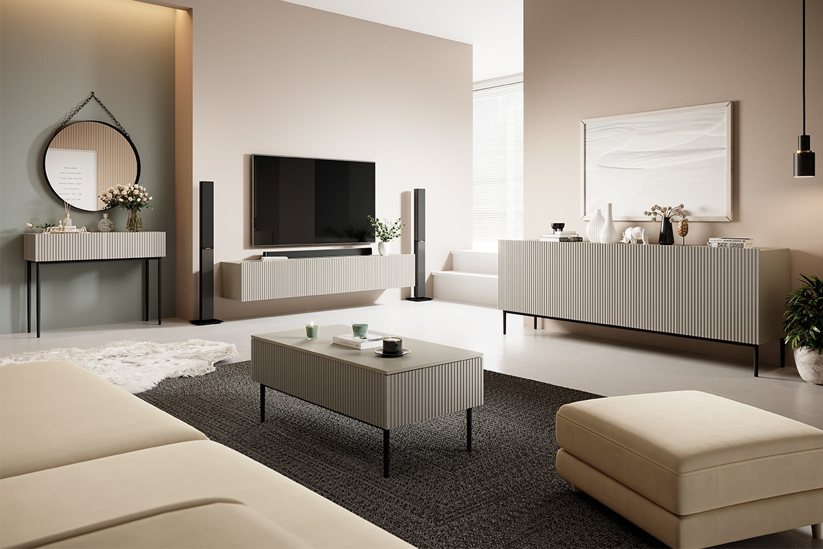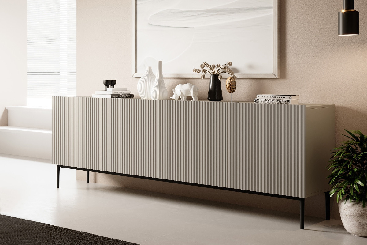 Komoda Nicole 200 cm - kašmír / čierne nohy, šírka: 200, výška: 85, hĺbka: 45, montáž.