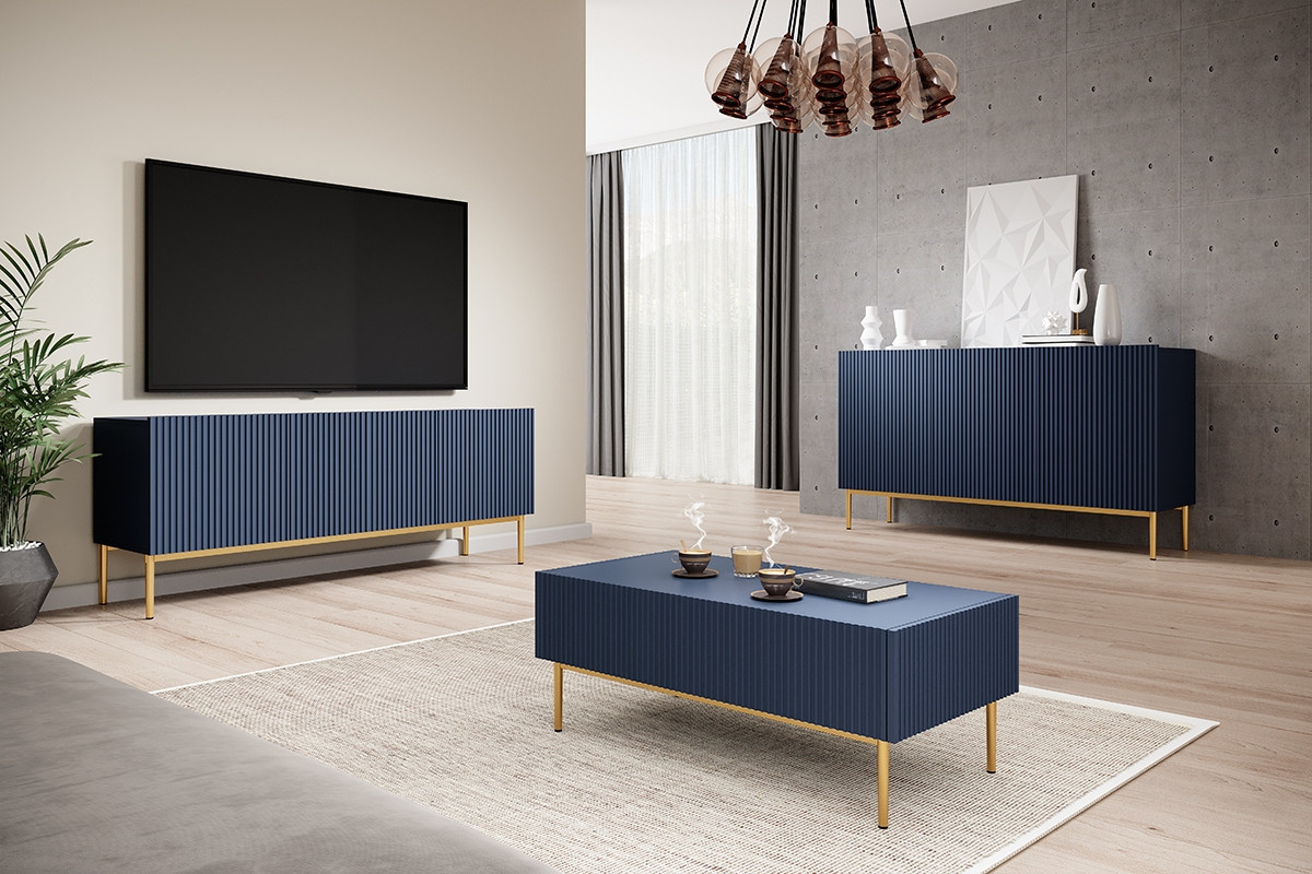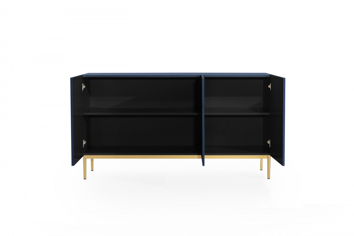 Komoda Nicole, MDF tmavo modrá / zlaté nohy