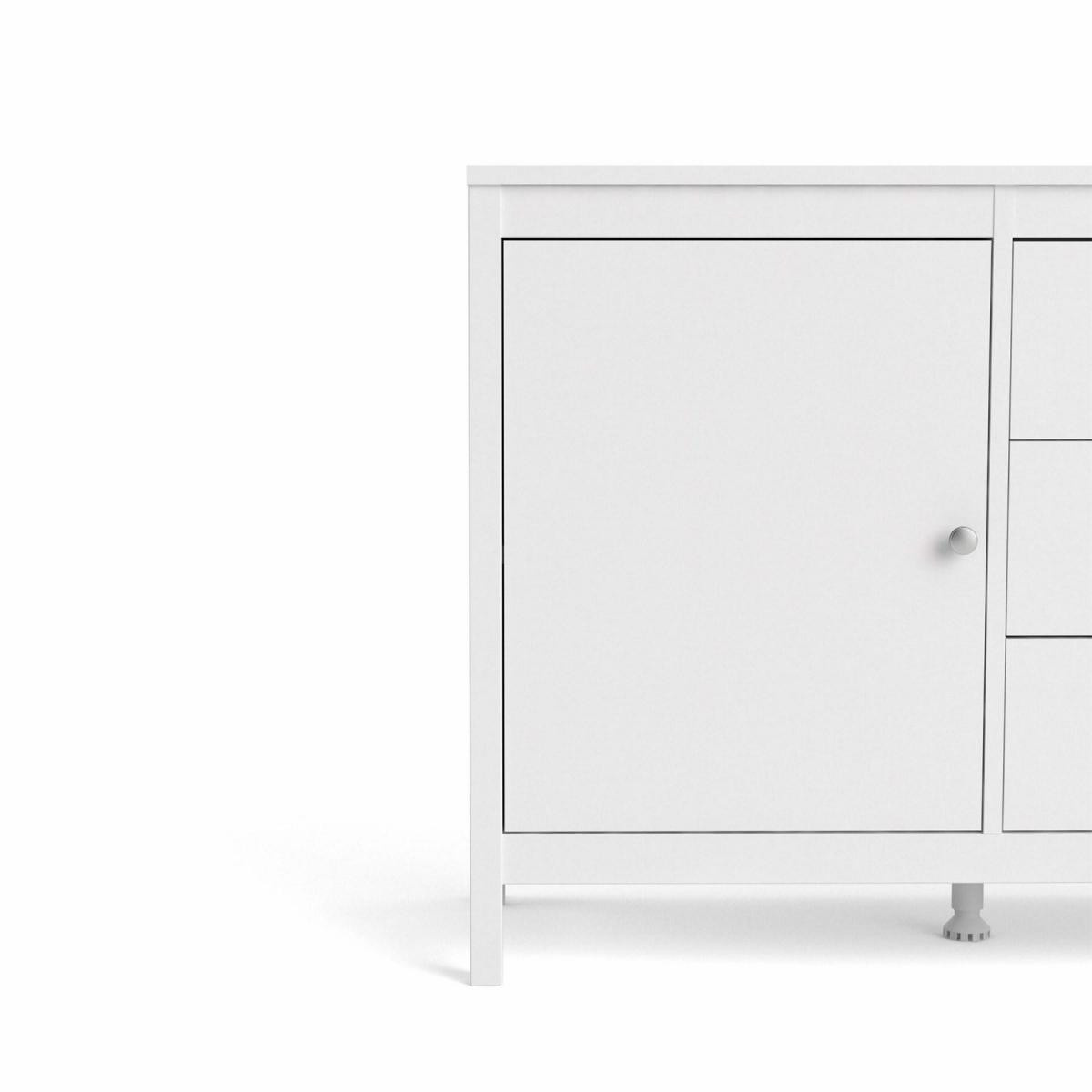 Komoda Real skvele zapadne do moderného aj štýlového interiéru. Stačí zmeniť drobný detail, ktorým sú v tomto prípade úchytky a z jemného štýlu provence, razom budete mať moderný kus, ktorý skvele zapadne napr. do industriálneho štýlu. Oba typy úchytiek, ktoré sú zobrazené na fotografii, sú súčasťou balenia. Komoda je vyrobená z lamina, ktoré je odolné a ľahké na údržbu. Vplyvom nastavenia monitorov alebo displejov telefónov sa zobrazenie farieb na fotografii môže od skutočnosti líšiť. Zobrazené doplnky a dekorácie nie sú v cene. Nábytok je dodávaný z Dánska, preto odporúčame overiť dostupnosť tovaru.