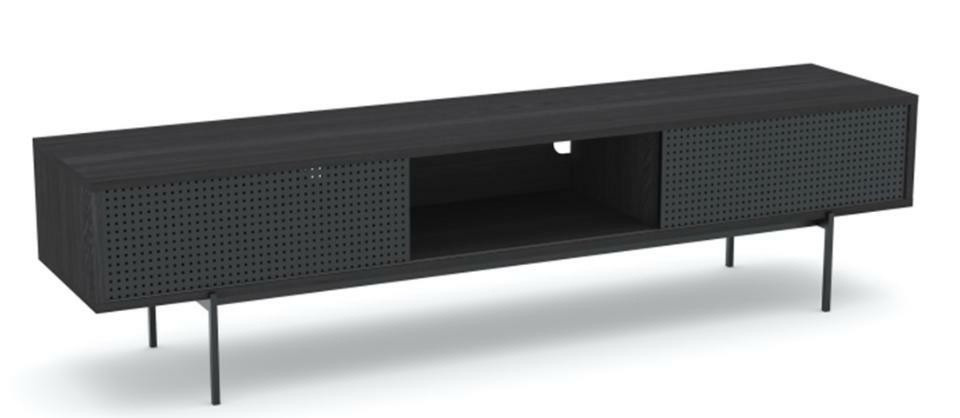 Televízna skrinka Angus je industriálny a moderný nábytok, ktorý sa ideálne hodí k multimediálnej stene. Skrinka je kombináciou korpusu z nábytkovej dosky a kovovej čiernej základne. Dyha použitá na výrobu skrinky imituje letokruhy jasena. Kovová základňa bola natretá práškovou farbou s matným povrchom. Čierna skrinka pod televíziu Angus je súčasťou série nábytku Angus. Tento nábytok sa vyznačuje jednoduchým tvarom a zaujímavým prevedením. Celá kolekcia je ladená do čiernej. Rozmery balenia: 146x44x9 cm Hmotnosť: 22 kg