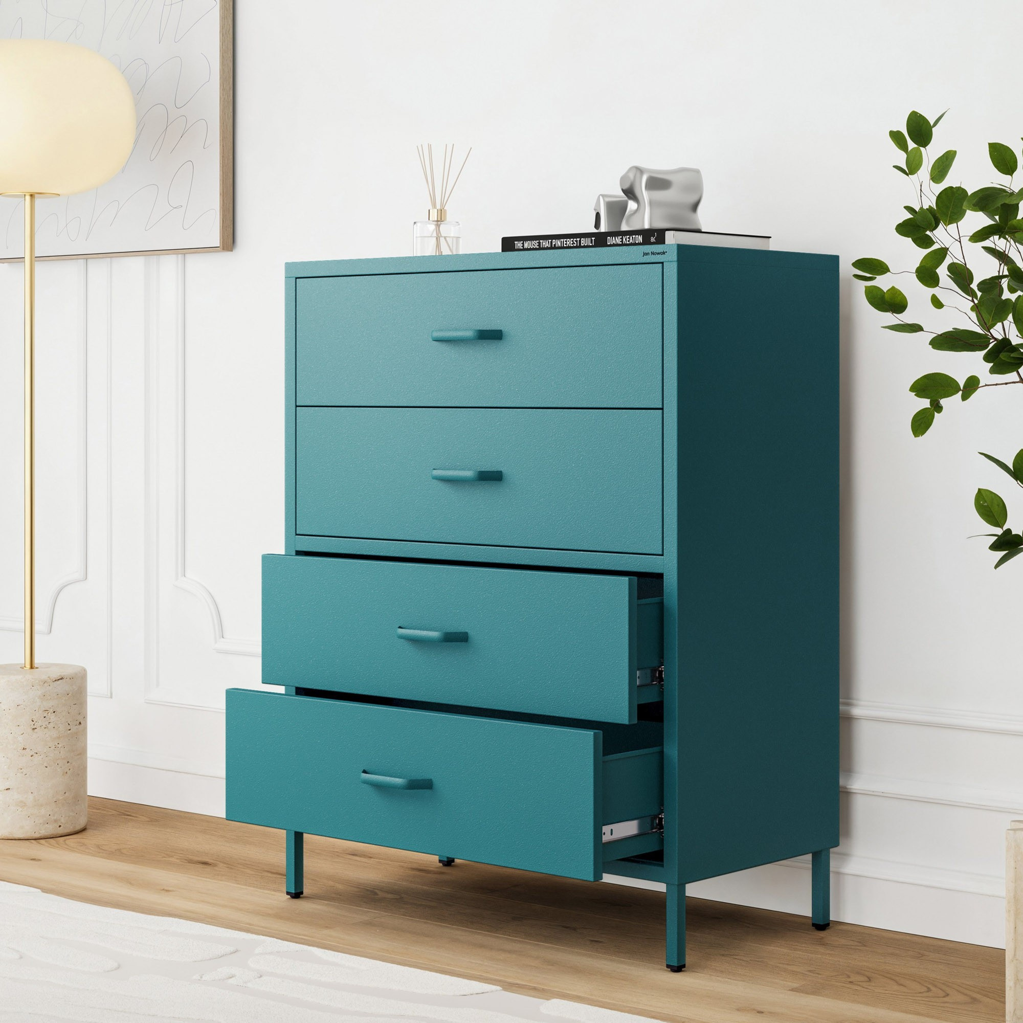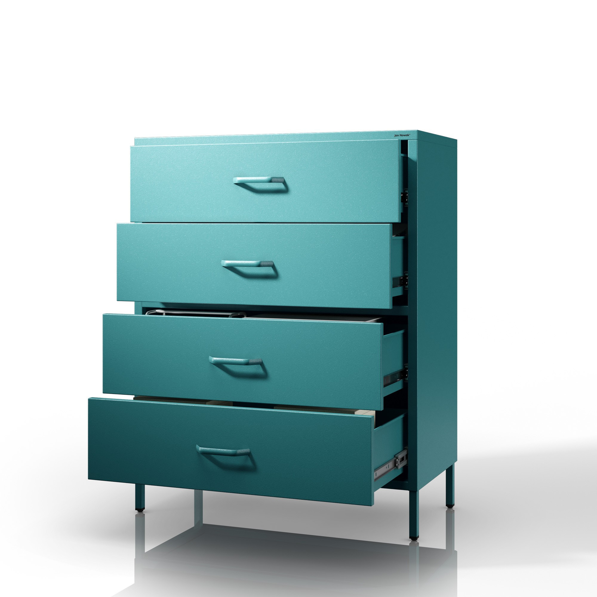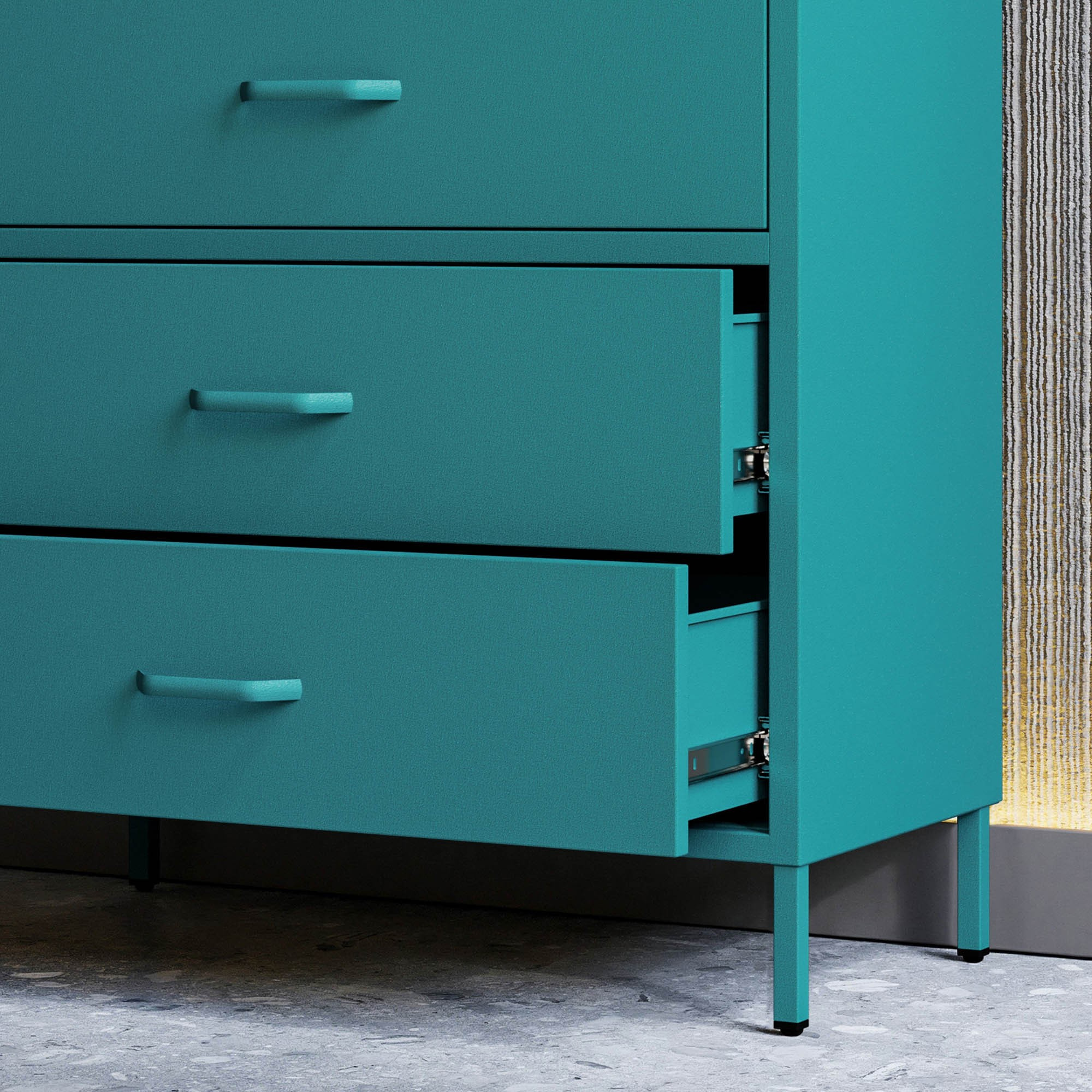Komoda skrinka kovová morská / tyrkysová Modern CARLA, 800 x 1015 x 400 mm