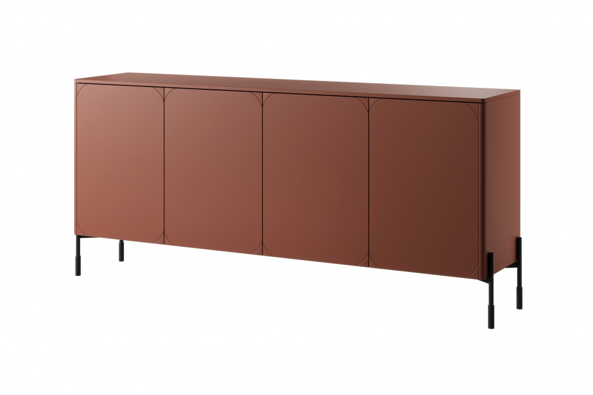 Štvordverová komoda s kontajnerom Sonatia 200 cm - bordová, šírka: 200, výška: 90, hĺbka: 45, montáž. Elegantná komoda v bielom lesku.
