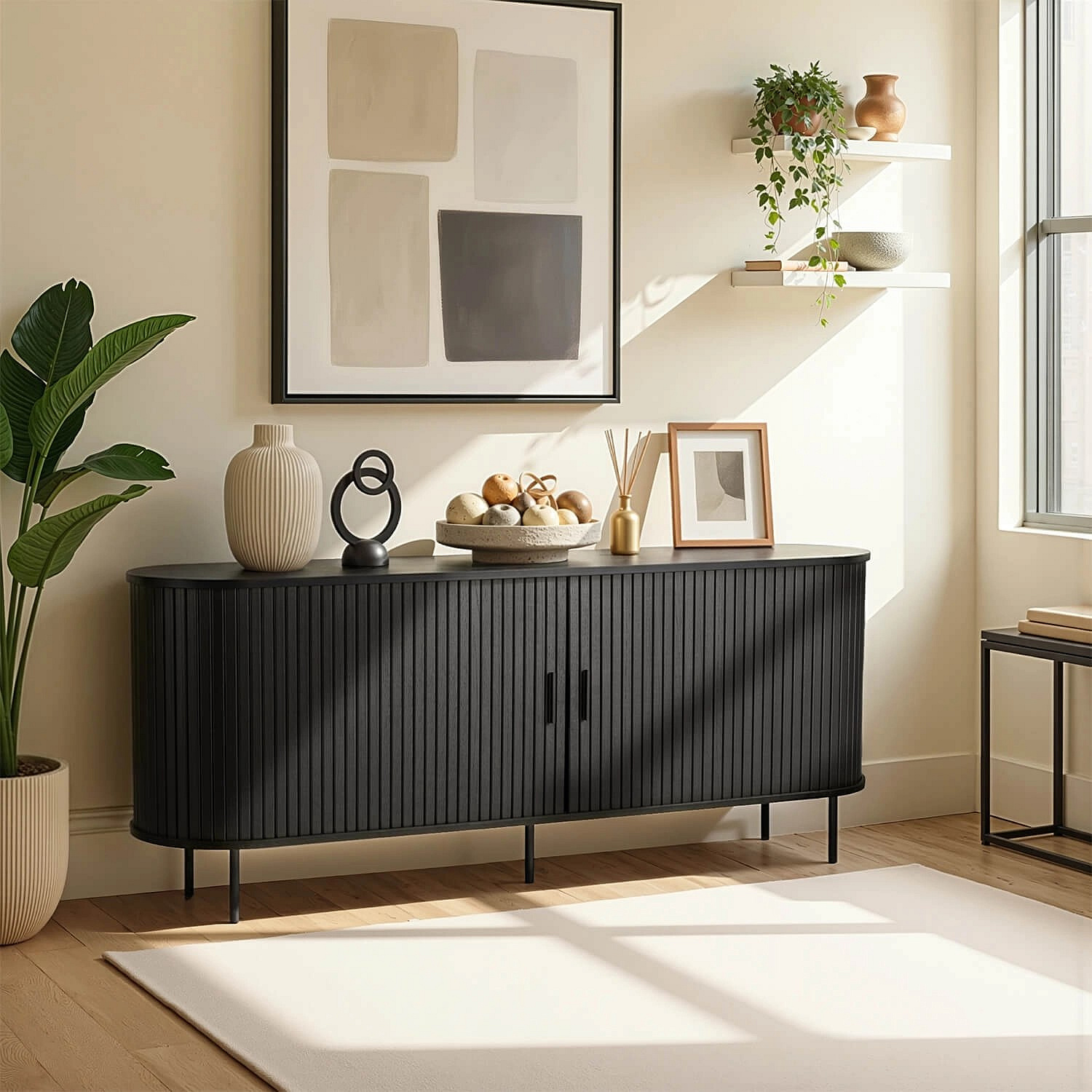Komoda TRISH 180 cm Dvojdverová Posuvná Čierna