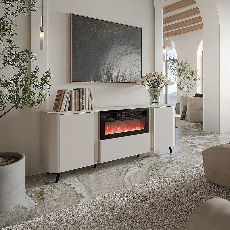 KOMODA 200 EF (s možnosťou montáže krbu, objednáva sa samostatne: CAMA-KRBU-ELEKTRICKÝ-... ) rozmery: Š/V/H - 75cm/200cm/39cm materiál: korpus: drevotriesková doska 16 mm čelá: laminovaná matná drevotriesková doska 16mm + MDF doska 16 mm Nohy: plastové, výška 14 cm Úchyt: PUSH TO OPEN