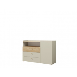 Komoda Yuva R8 je vyrobená z kvalitného lamina v krásnom dekore prírodného duba a šedobéžovej farby. Laminát je odolný a určite oceníte jeho jednoduchú údržbu. Komoda je dodávaná v demonte. Súčasťou balenia je montážny návod vrátane všetkých spojovacích prvkov.