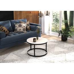 Konferenčný stolík RINEN s rámom z ocele a doskou z laminovanej dosky. RINEN je ideálne miesto na oddych pri káve. Jednoduchý a zároveň neobyčajný dizajn, ktorý sa hodí do každého interiéru.