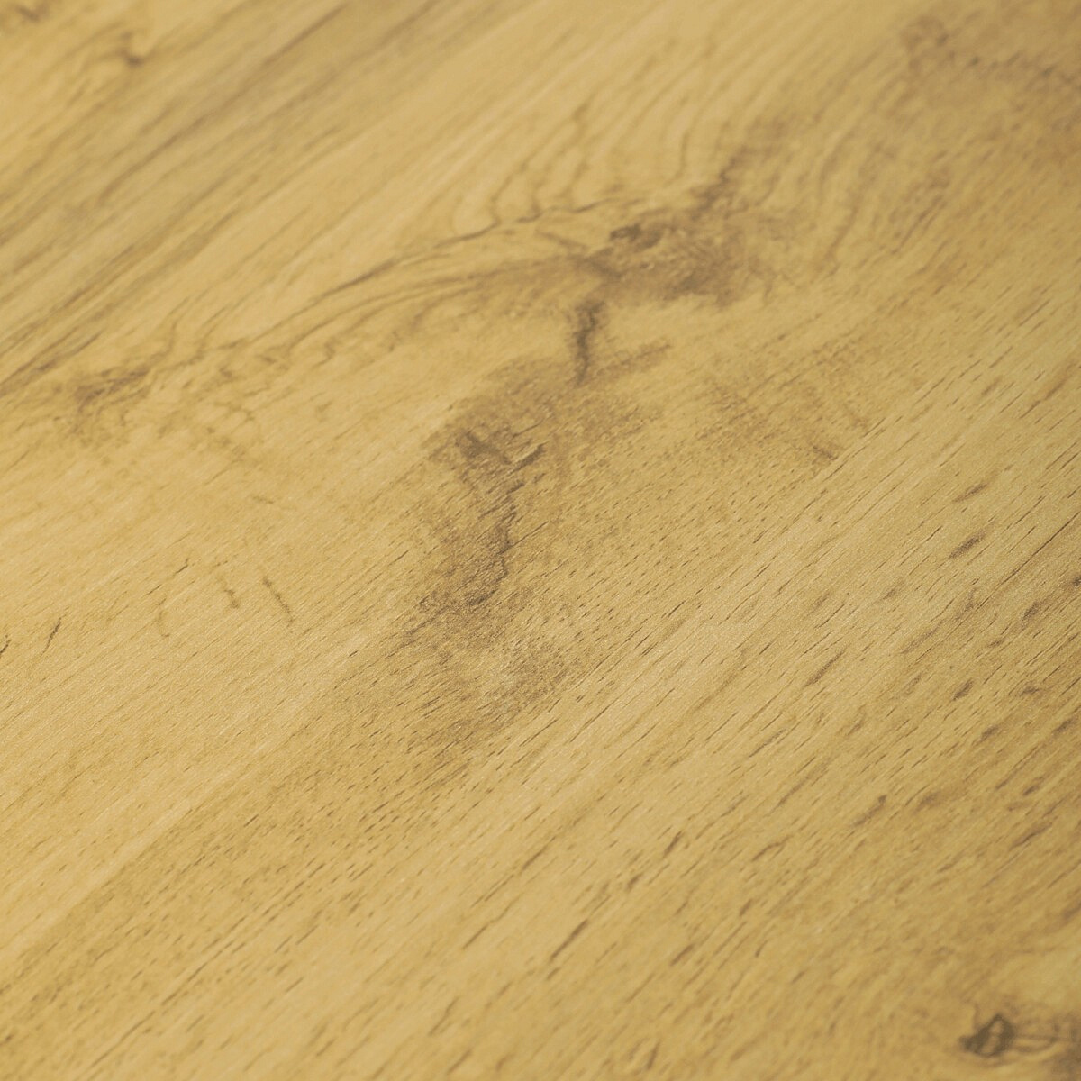 Konferenční stolek CT-R5212 OAK kombinuje praktický design s kvalitním materiálovým provedením. Deska stolu je vyrobena z lamina s dubovým dekorem a matnou povrchovou úpravou, která je doplněna ABS hranou pro zvýšení odolnosti proti poškození. Stabilní kovová podnož v černé barvě zajišťuje pevnost a stabilitu celého stolku. Výška 50 cm umožňuje pohodlné využití v obývacím prostoru jako doplněk k sedací soupravě. Rozměry 120x60 cm poskytují dostatek prostoru pro odkládání drobných předmětů či dekorací.