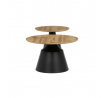 Sada dvou konferenčních stolů kombinuje desky z MDF s dekorativním povrchem v odstínu dub artisan a stabilní kovové podnože v černé barvě. Desky mají matnou úpravu, která usnadňuje údržbu a zajišťuje dlouhodobou odolnost proti běžnému opotřebení. Větší stůl má průměr 70 cm a výšku 42,5 cm, menší pak průměr 50 cm a výšku 47,5 cm, což umožňuje variabilní uspořádání v prostoru. Kovová podnož je navržena pro pevnost a stabilitu, čímž zajišťuje bezpečné používání. Moderní design s kontrastem přírodního dekoru a černé barvy se hodí do různých interiérů.