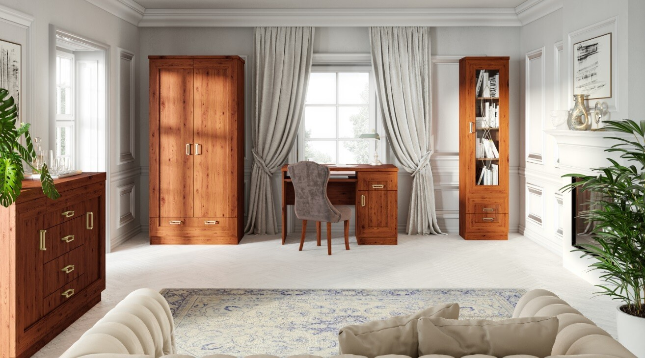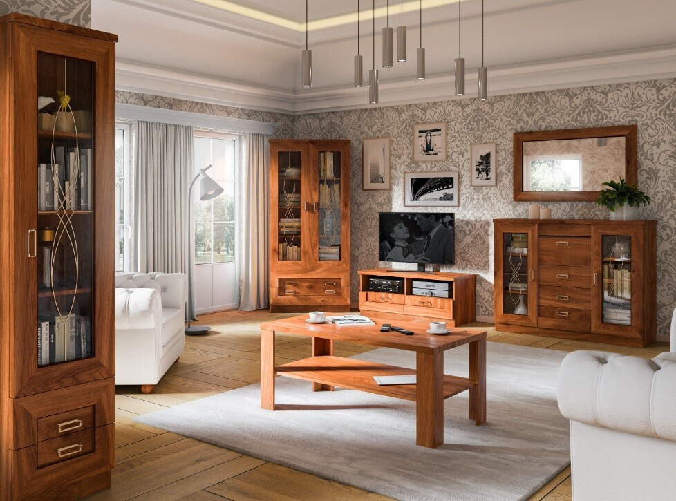 s rozmermi 90/59/60. Tadeusz je rustikálny nábytok, ktorý je vhodný do obývacích izieb, spální, pracovní a jedální. Dominujú mu masívne kovové úchyty, ktoré dokonale ladia s jedinečnou farebnou schémou. Nábytok je k dispozícii v dvoch farbách: dub ročný a dub Lefkas. Je vyrobená z vysokokvalitnej laminovanej drevotriesky s hrúbkou 16 mm a 32 mm. Systém sa skladá z viac ako 20 častí, ktoré možno ľubovoľne kombinovať. Vytvorte si dokonalý domov s čarovnou kolekciou TADEUSZ.