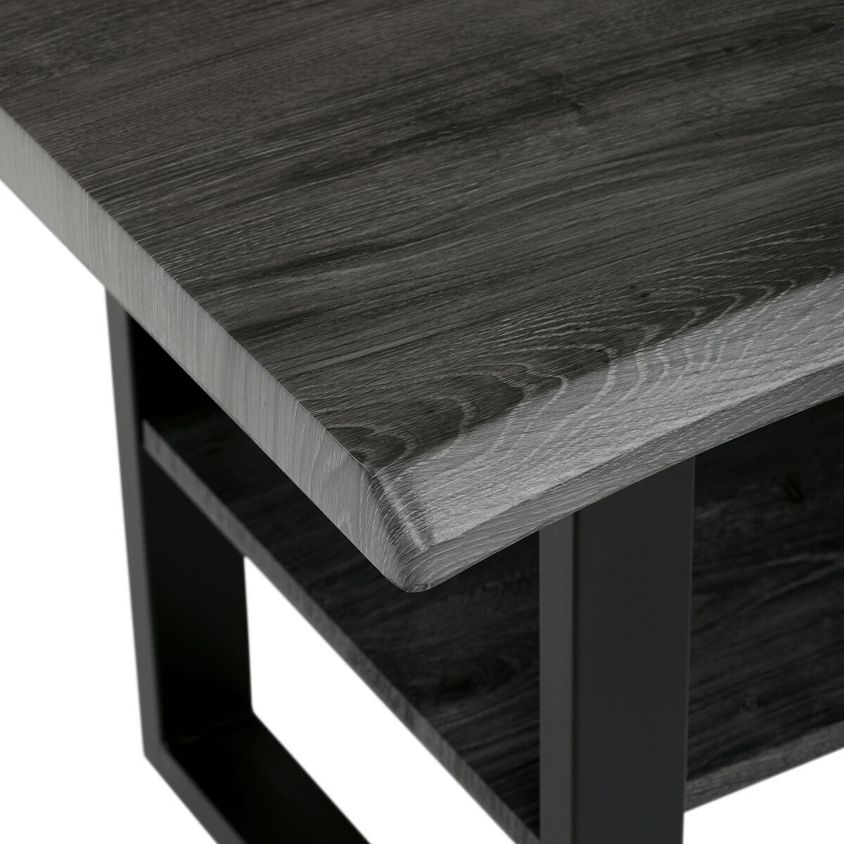 Konferenčný stôl, 120x60x55 cm, MDF doska, dekor sivý dub, kov, polica, čierny lak