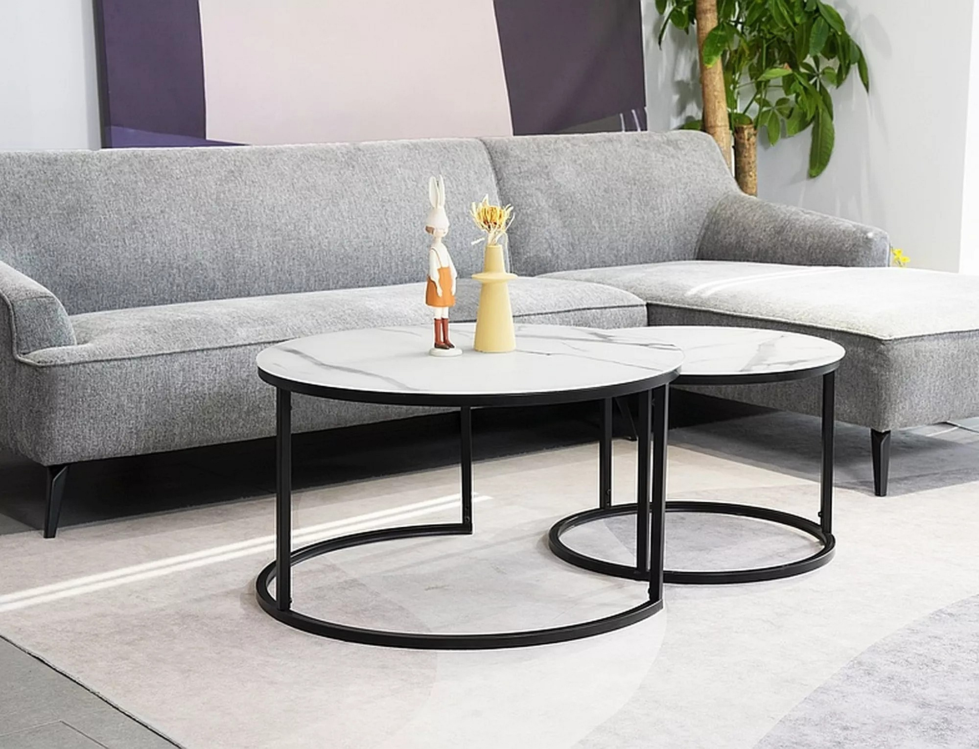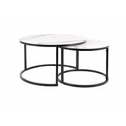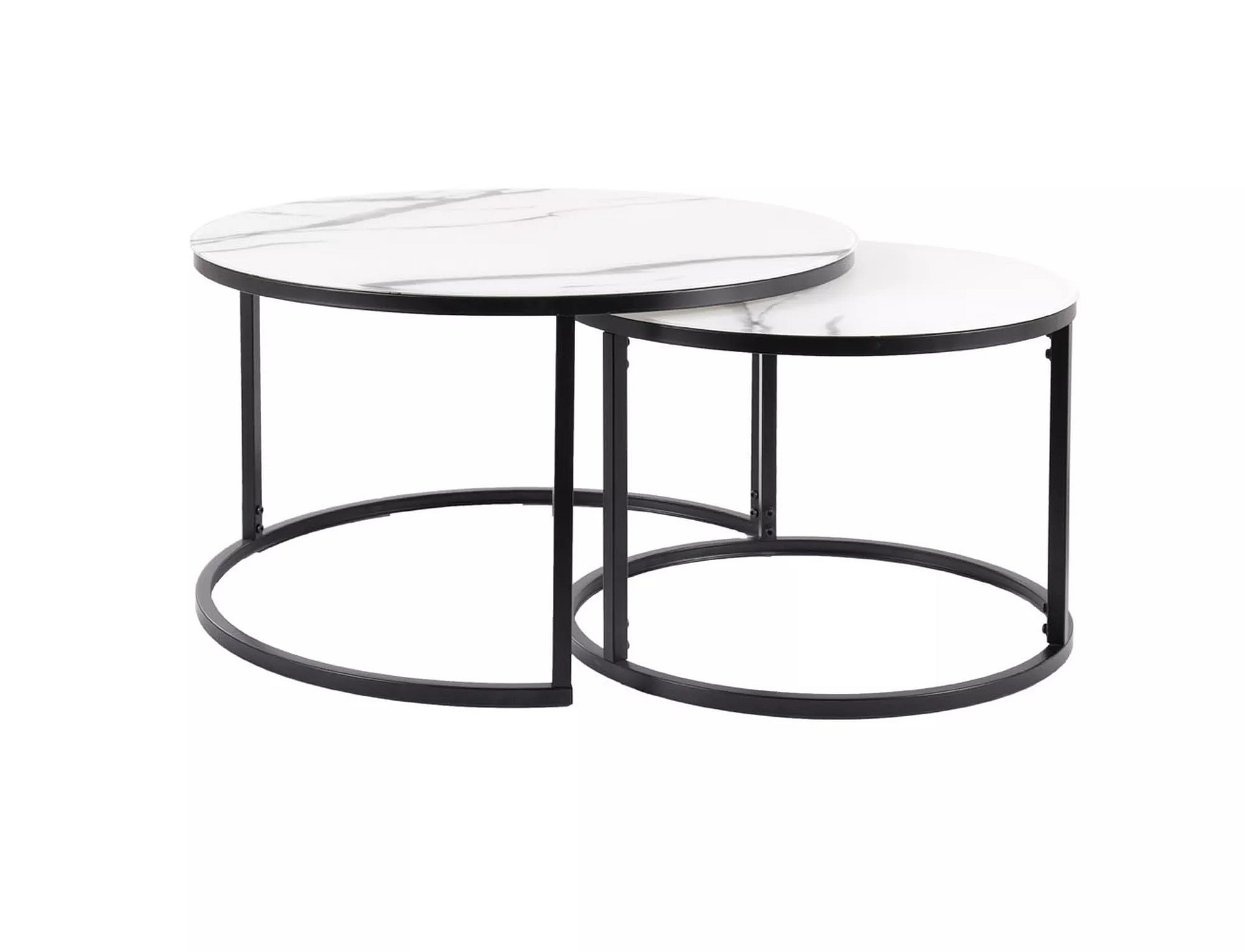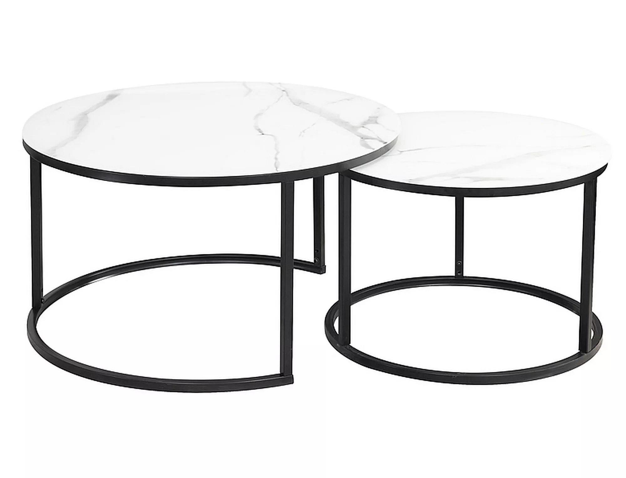 Konferenčný stôl ATLANTA C - set 2 stolov, biely efekt mramoru/čierny mat