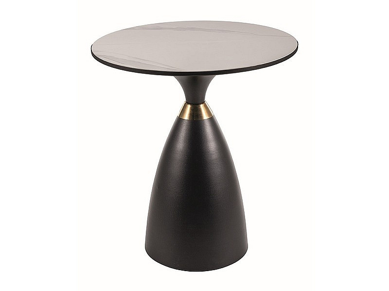 Konferenčný stôl GEMINI, Efekt bieleho mramoru/Čierna/Zlatá