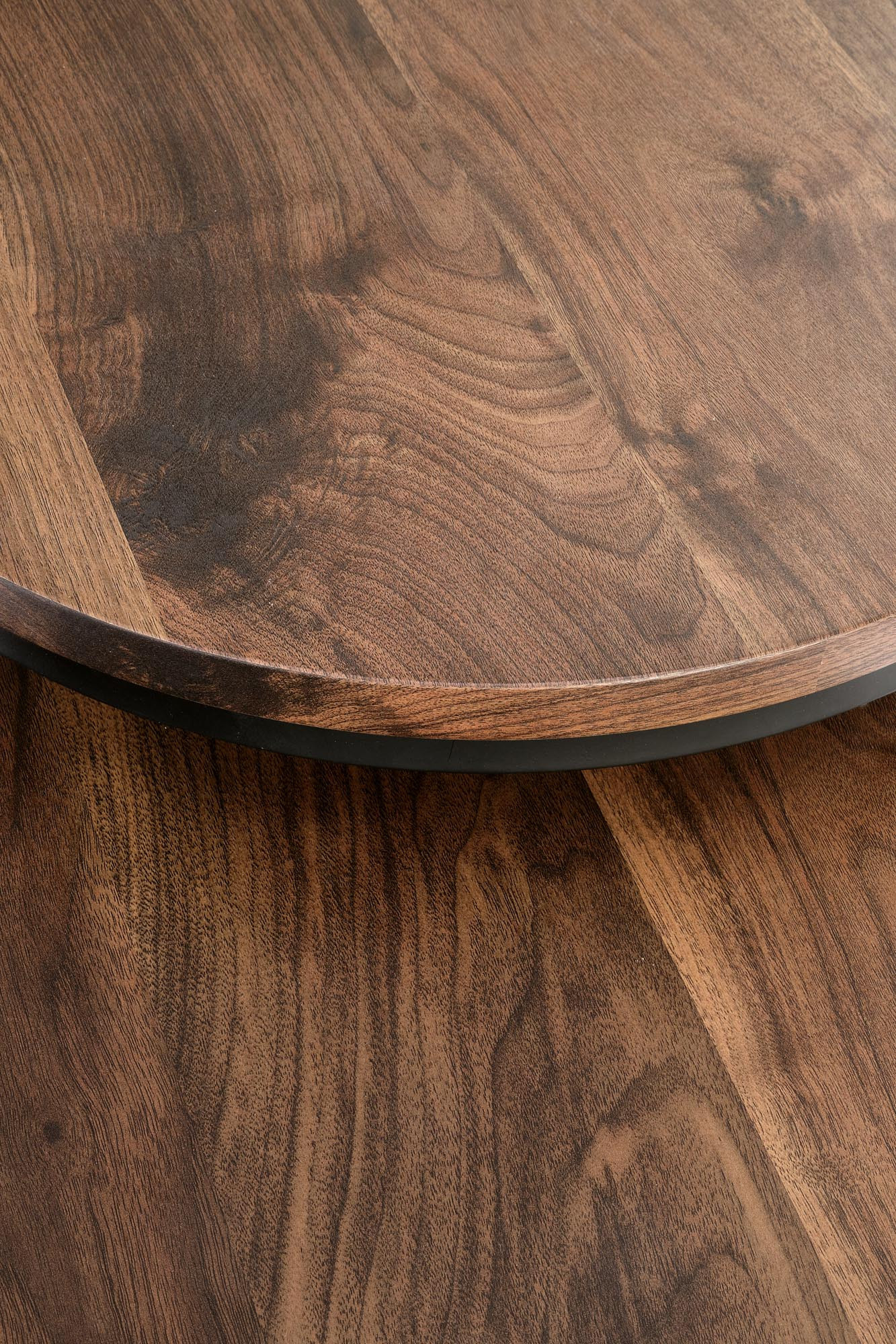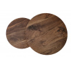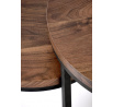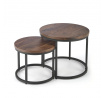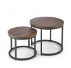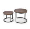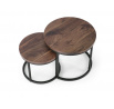 rozmery: veľká - fi53/45 cm, malá - fi43/35 cm, sada 2 lavičiek, materiál: dyhovaná MDF / prášková oceľ, farba: orech / čierna