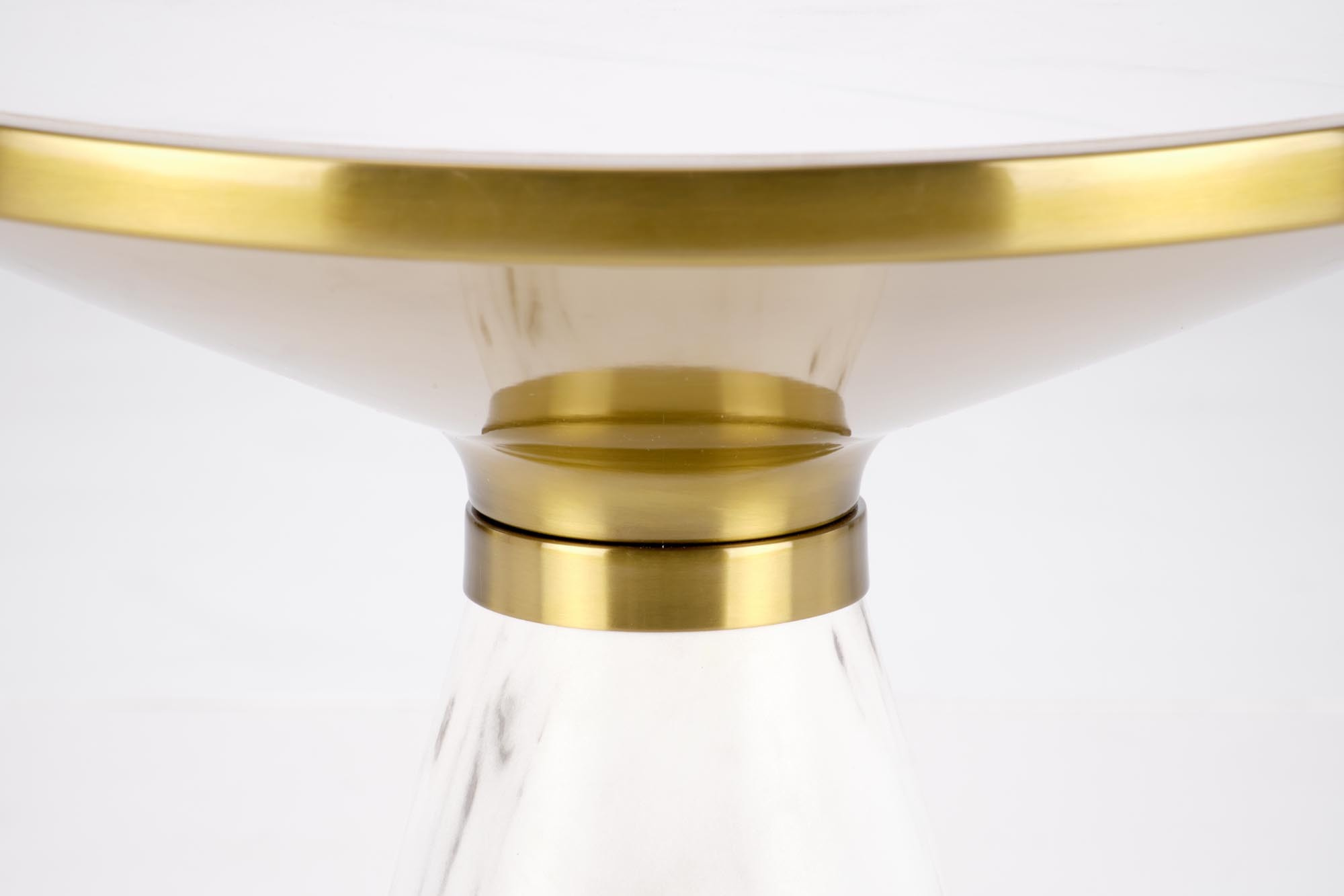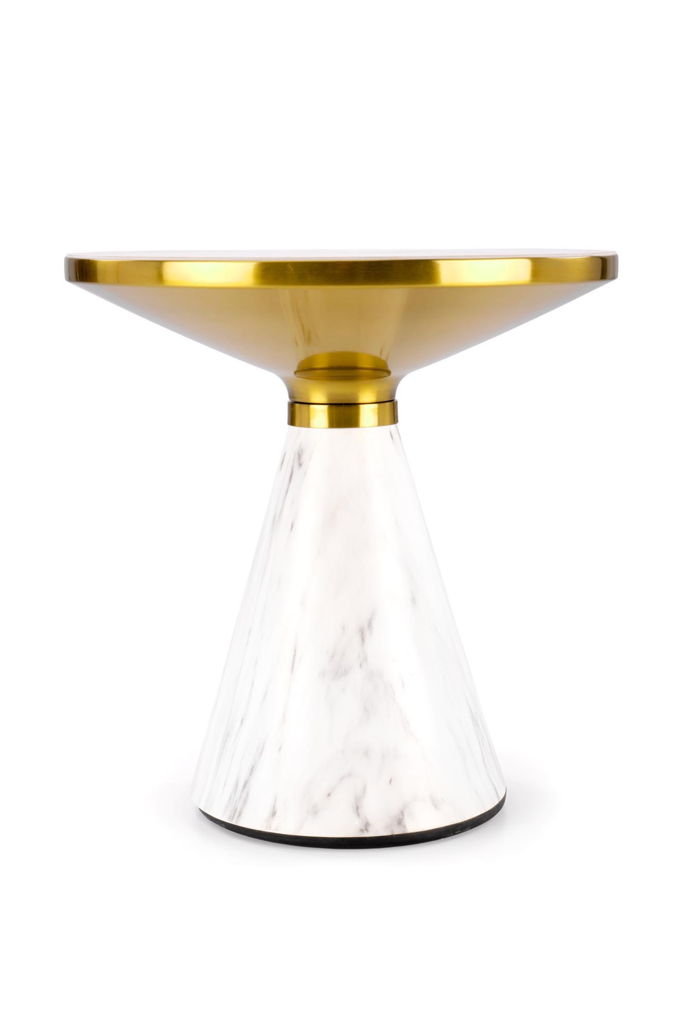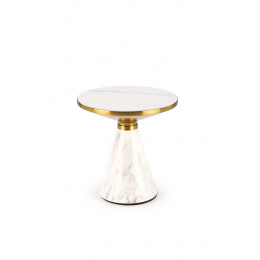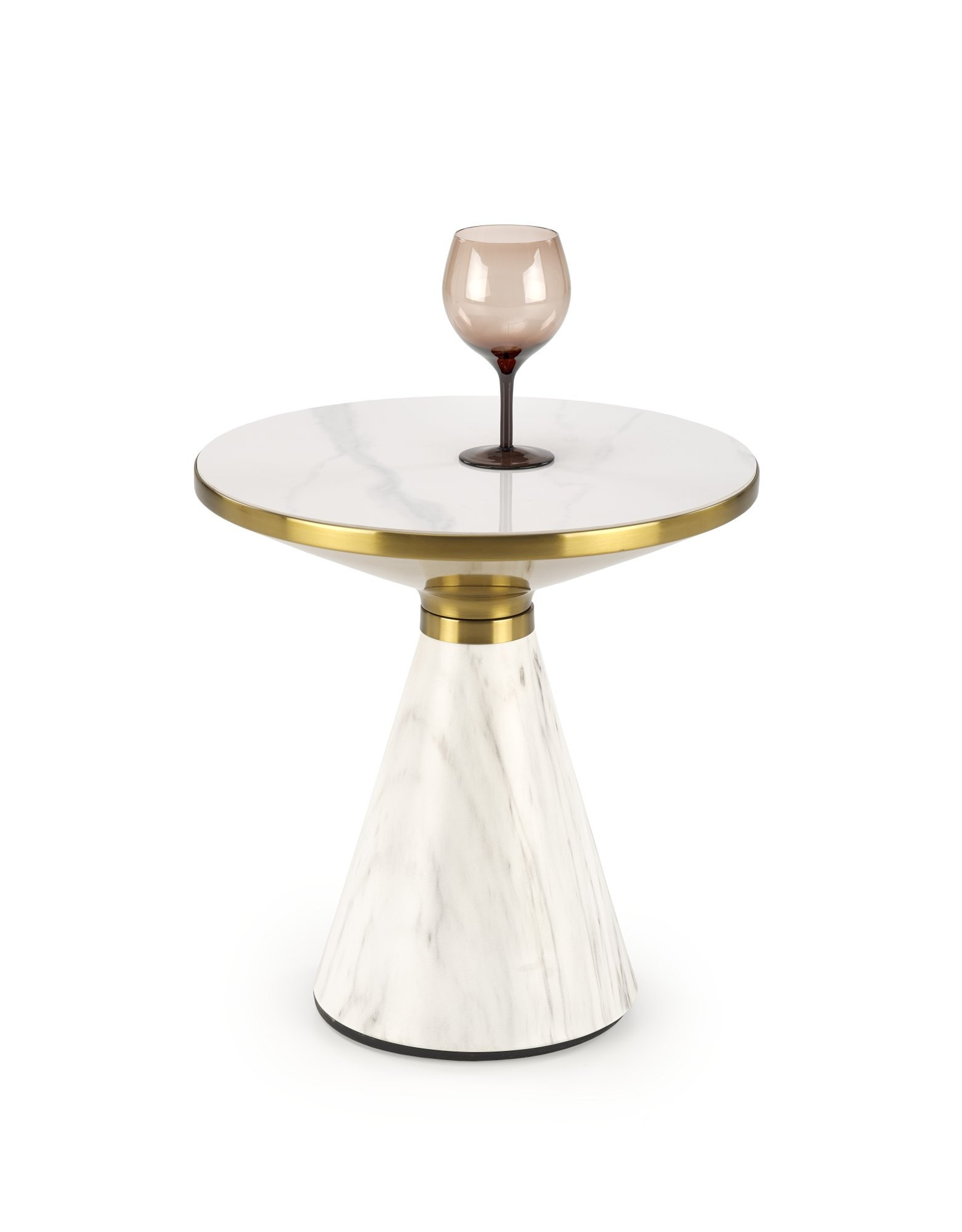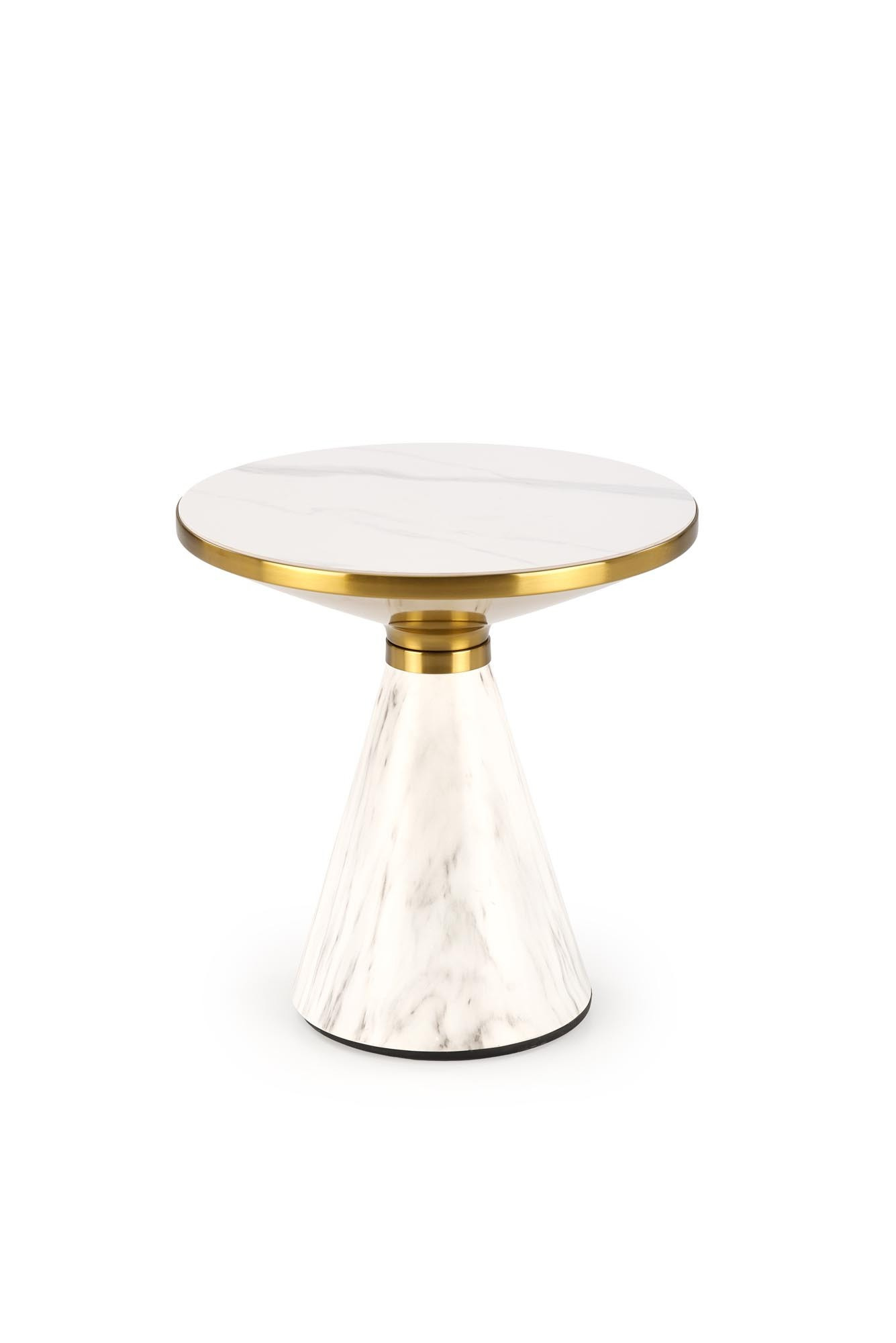 Konferenčný stôl TALBI, Efekt bieleho mramoru/Biela/Zlatá