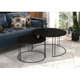 Sada konferenčných stolíkov ETTA s rámom z pevného, silného drôtu a doskou z laminovanej dosky. ETTA je ideálne miesto na oddych pri káve. Jednoduchý a zároveň neobyčajný dizajn, ktorý sa hodí do každého interiéru.