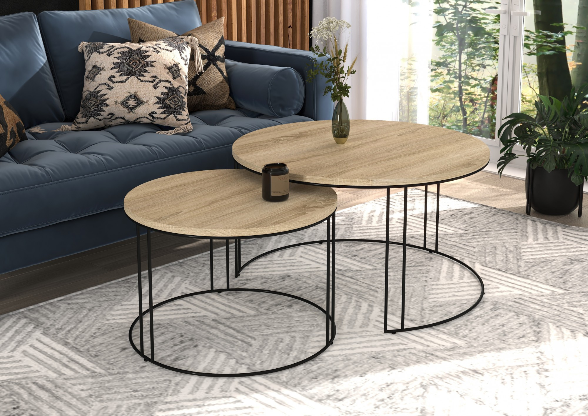 Sada konferenčných stolíkov ETTA s rámom z pevného, silného drôtu a doskou z laminovanej dosky. ETTA je ideálne miesto na oddych pri káve. Jednoduchý a zároveň neobyčajný dizajn, ktorý sa hodí do každého interiéru.