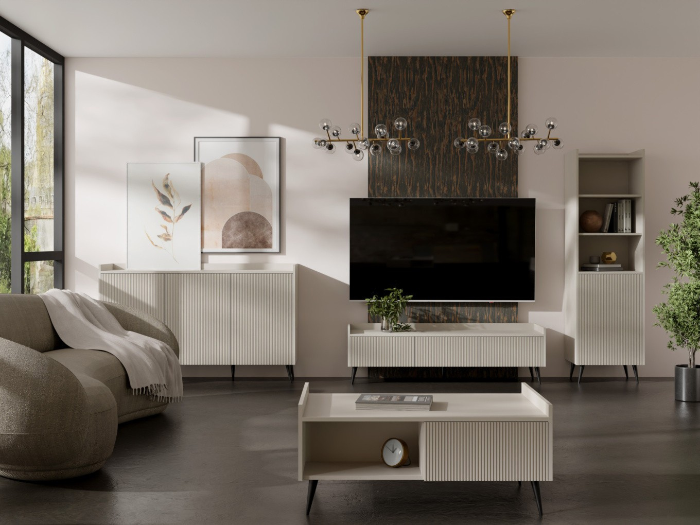 Obývací systém Adleta sa vyznačuje elegantným dizajnom a funkčnosťou. Vnáša do miestnosti závan sviežosti a kreativity. Ľahko sa prispôsobí potrebám moderného obývacieho pokoja. Súprava obývacej steny Adleta sa skladá z knižnice, nočného stolíka, komôd a TV skriniek, ktoré sú v rôznych variantoch. Tento jedinečný nábytok zaujme aj krásnymi kašmírovými farbami.