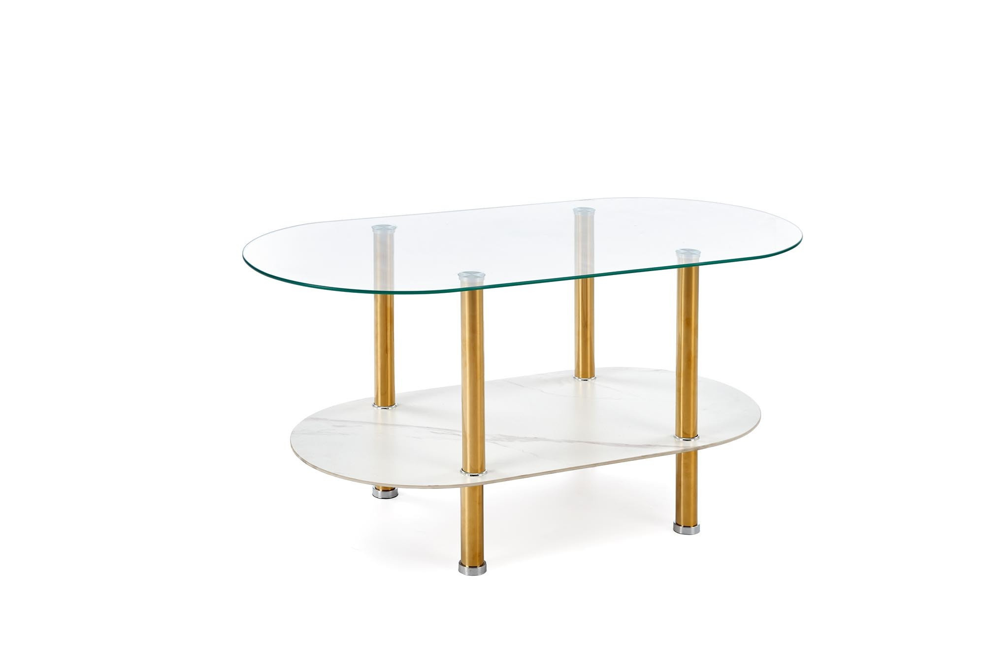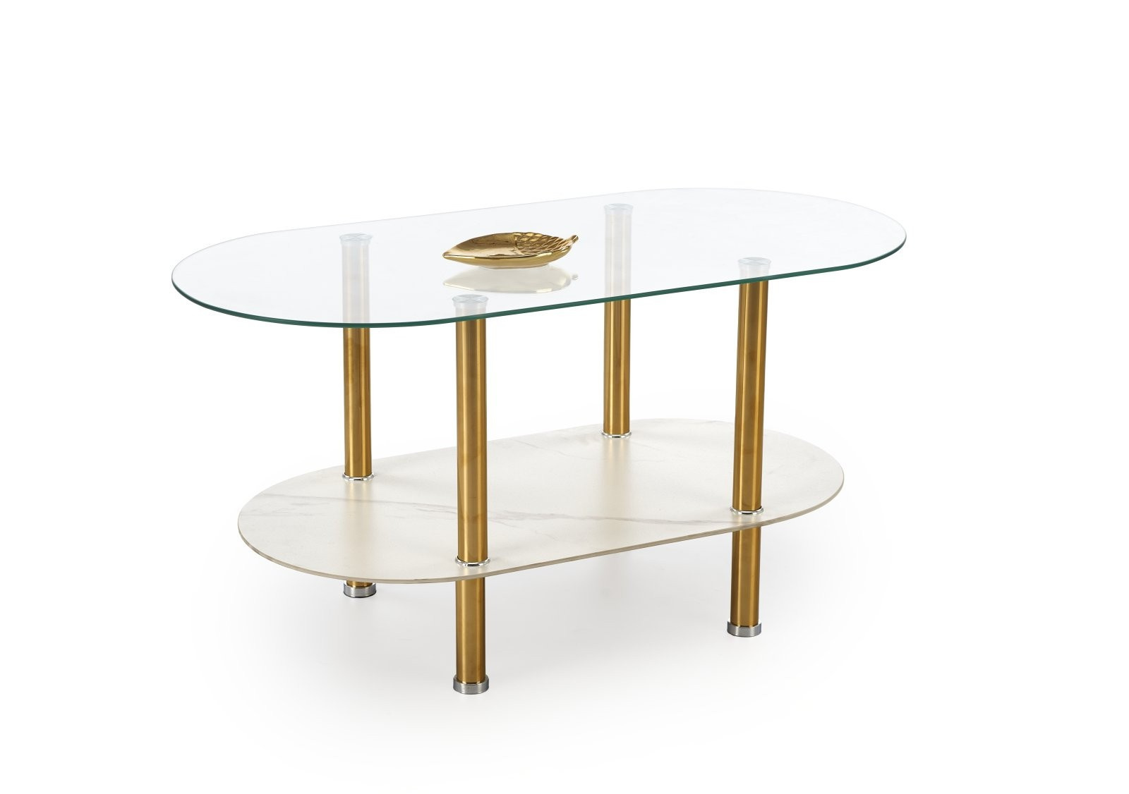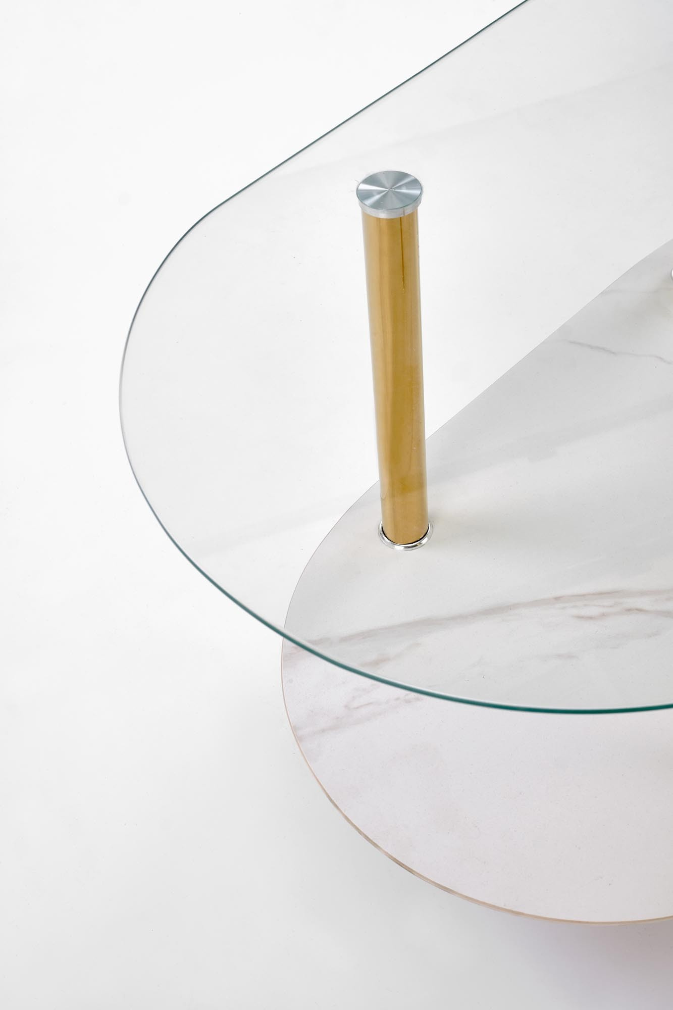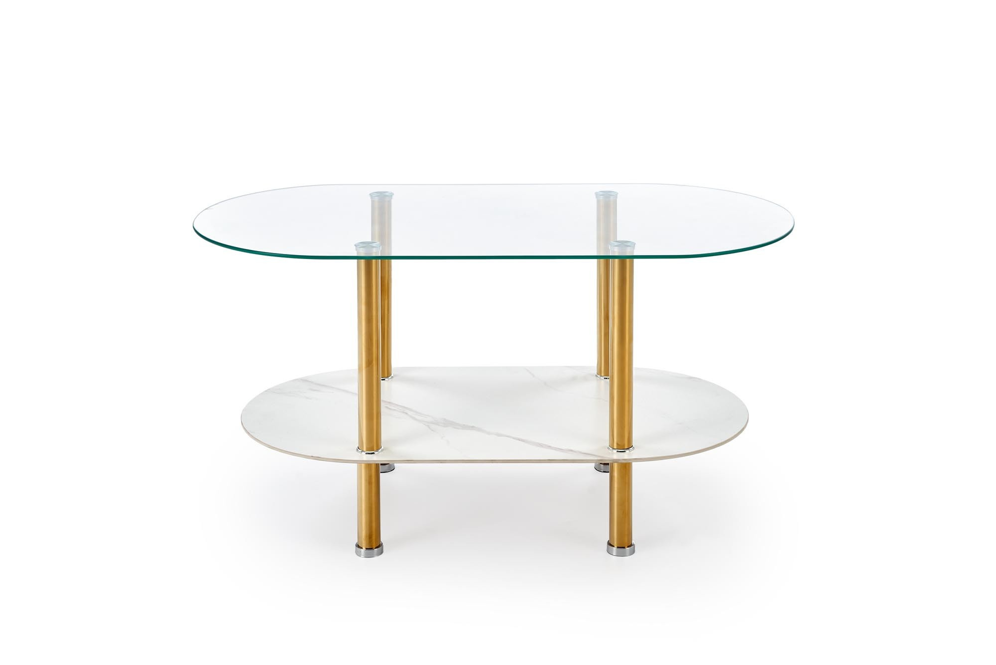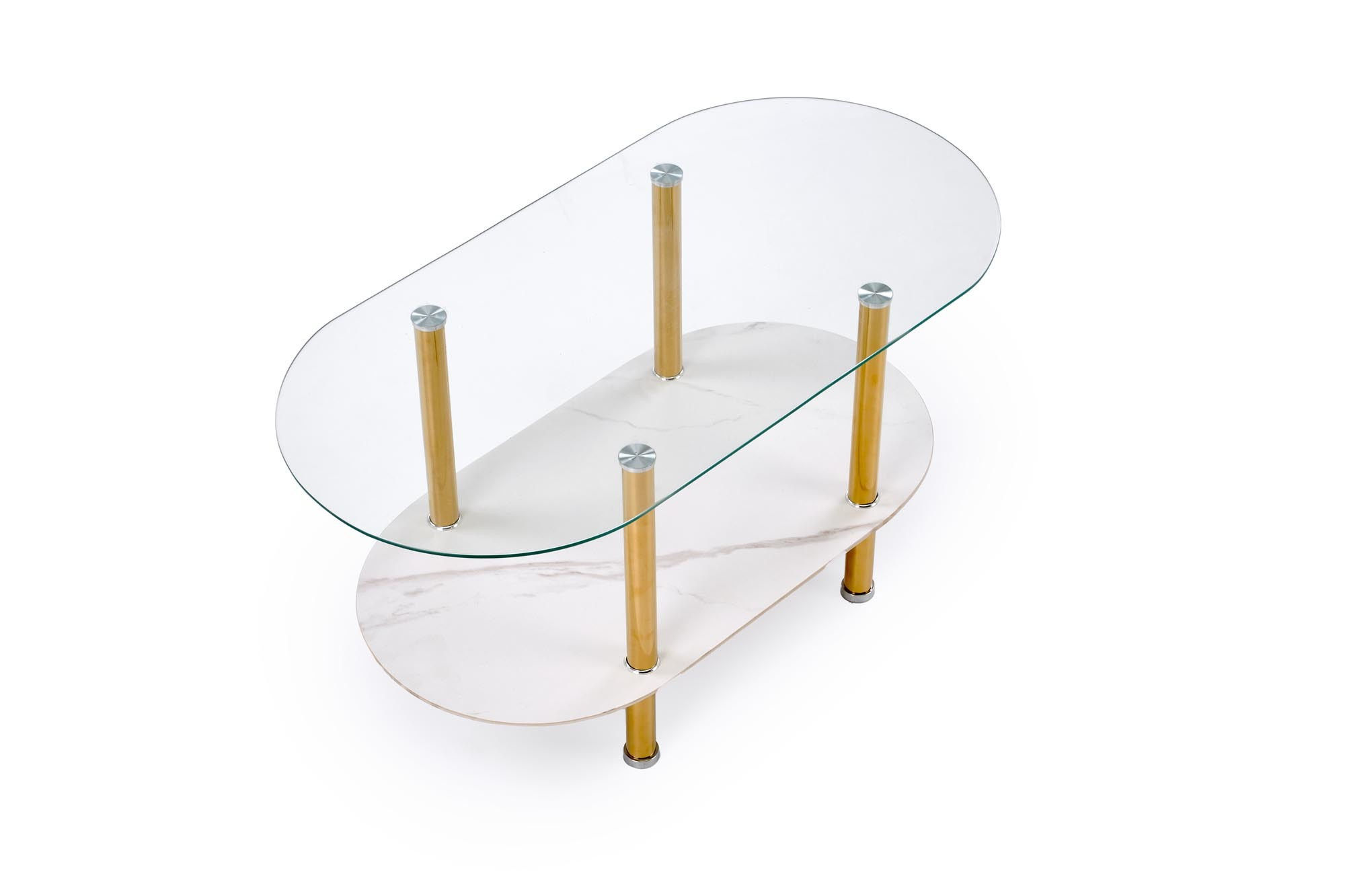 Konferenčný stolík DUCAT, efekt bieleho mramoru / zlatá