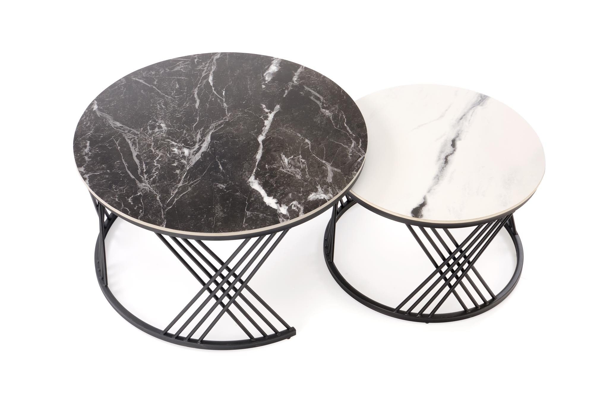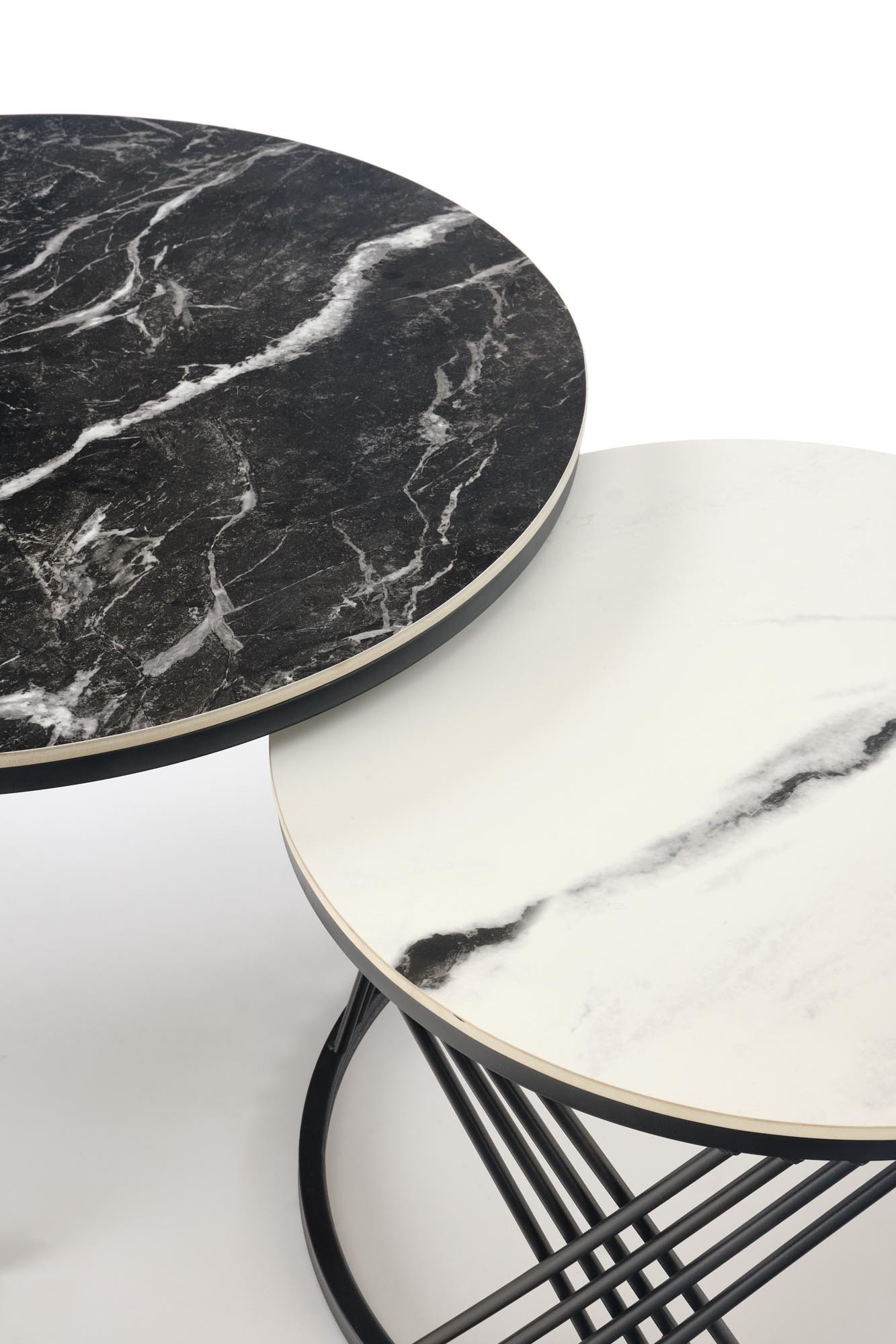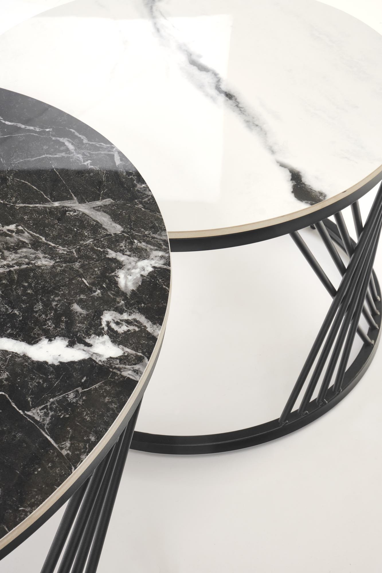 Konferenčný stolík FLAMINGO, efekt čierneho mramoru / efekt bieleho mramoru / čierna