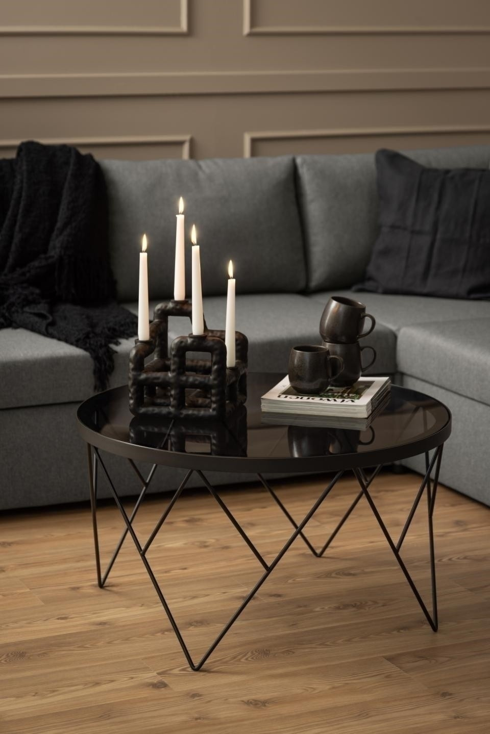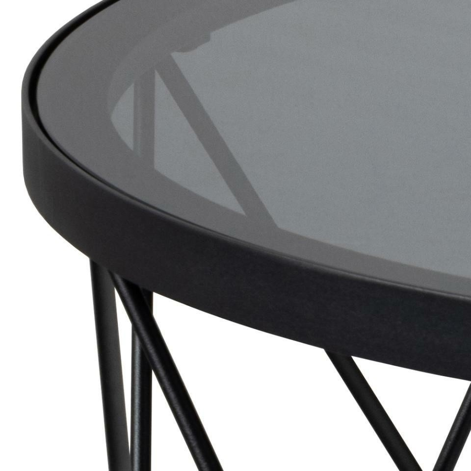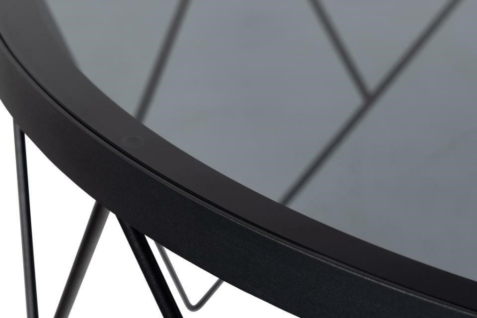Okrúhly konferenčný stolík Halstow, doska vyrobená z dymového tvrdeného skla. Základňa je matná čierna oceľ lakovaná práškovou farbou. Harmonické spojenie dymového tvrdeného skla a drôtenej základne vytvára očarujúci stredový prvok, v ktorom sa moderná sofistikovanosť snúbi s umeleckým pôvabom. Vďaka doske z dymového skla je ľahký a drôtená základňa mu dodáva šarm. Vyžaduje montáž. Rozmery kartónov: 84x84x7cm a 59x48x19cm.