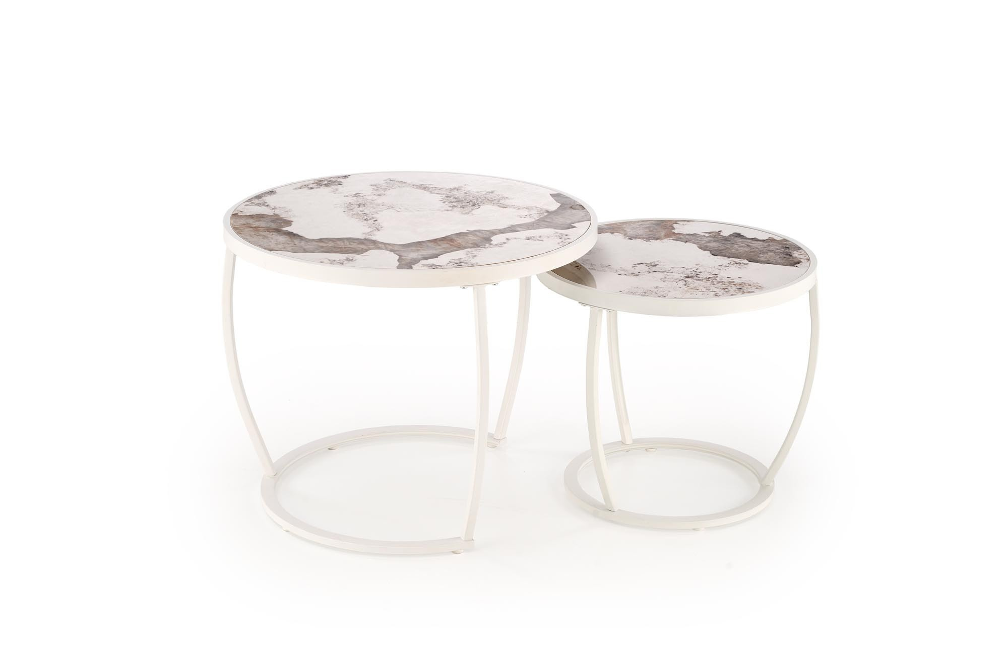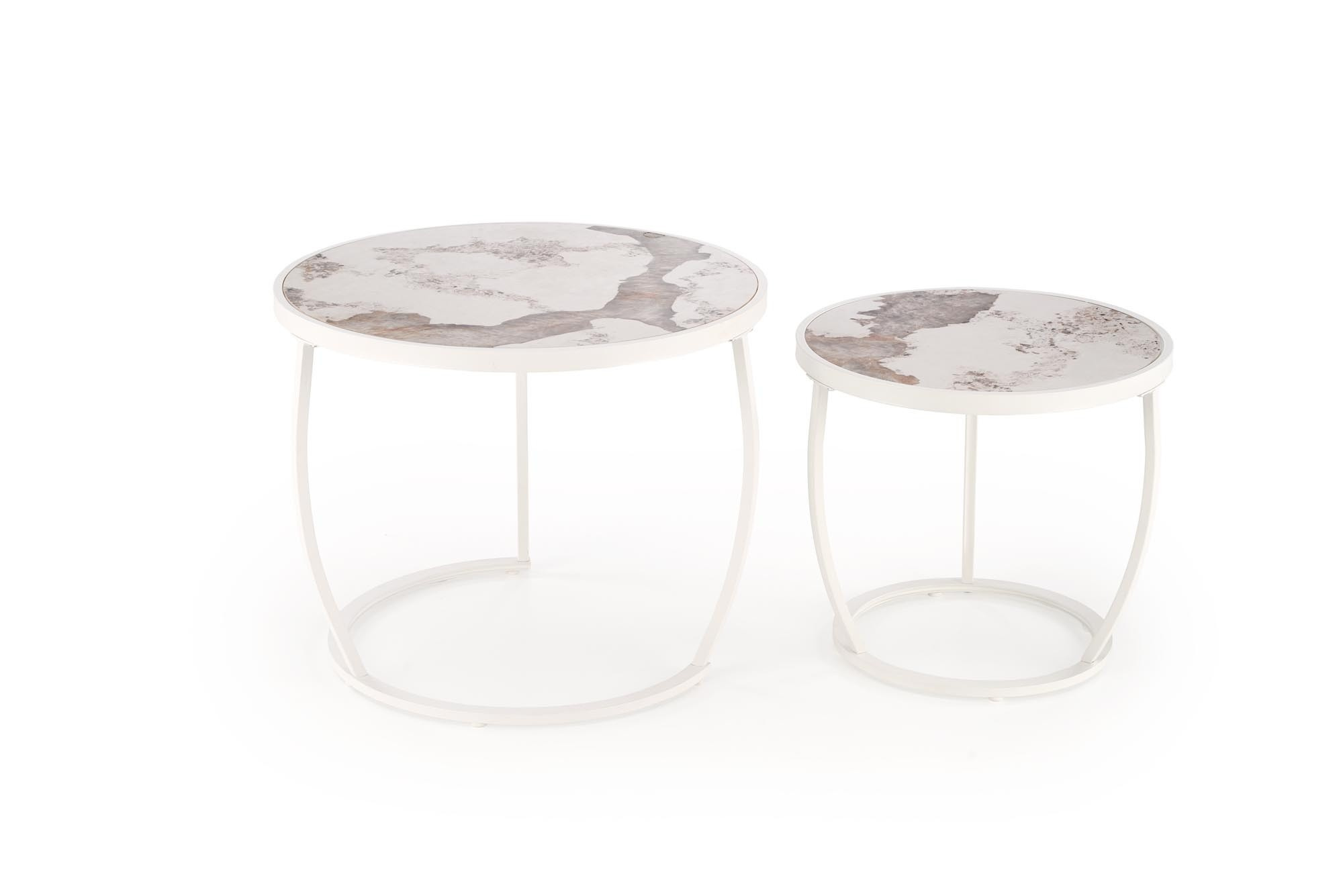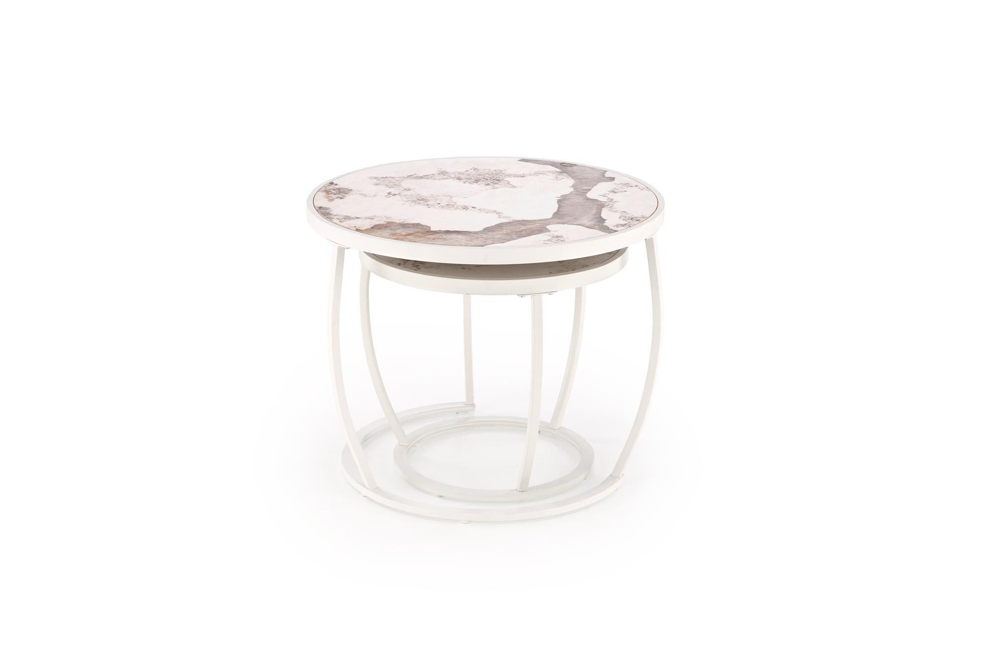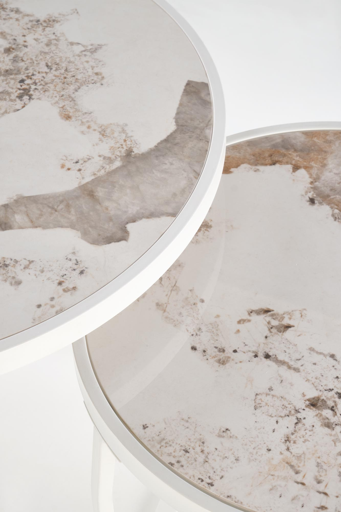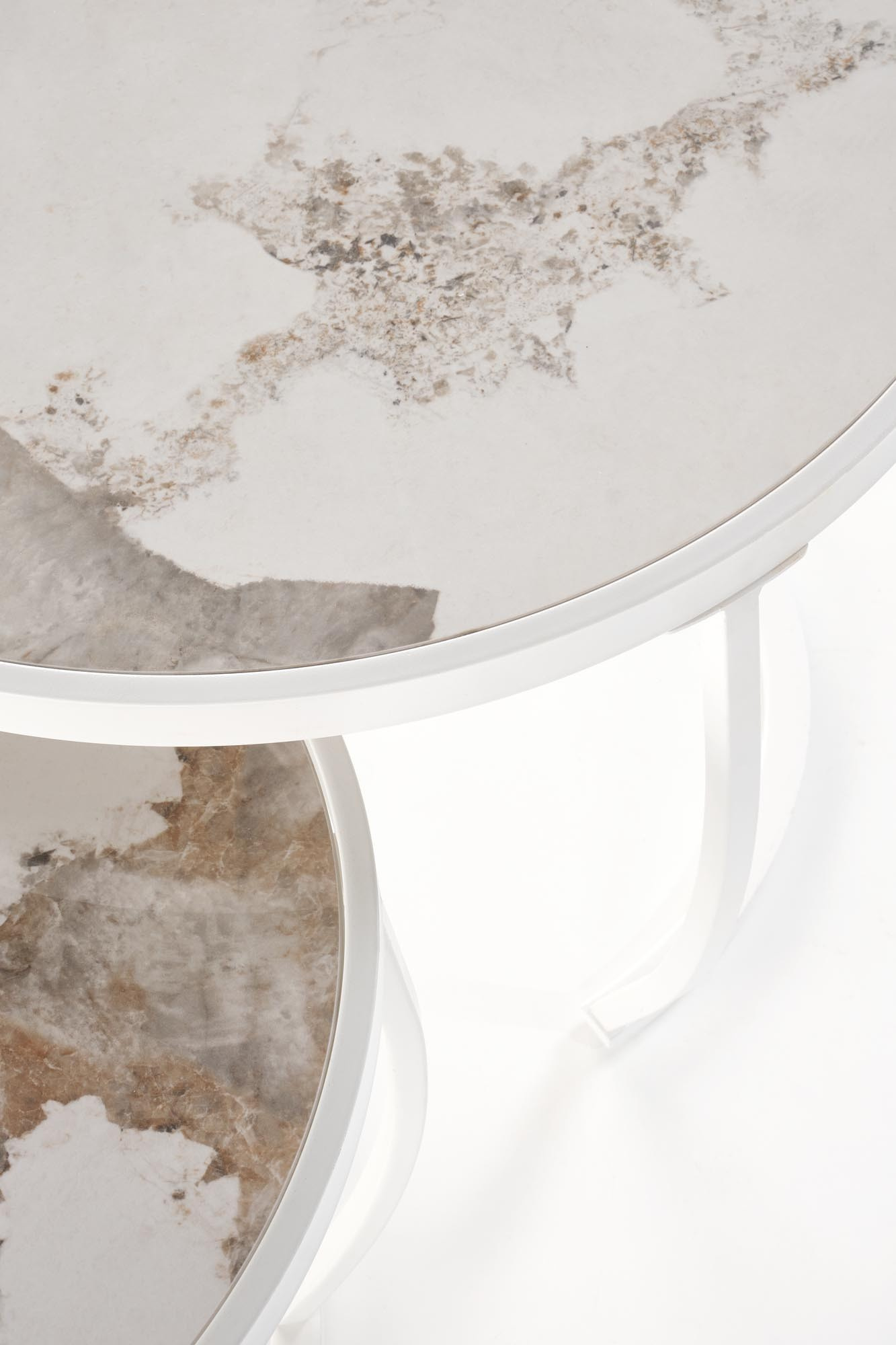 Konferenčný stolík INES, efekt béžového mramoru / biela