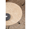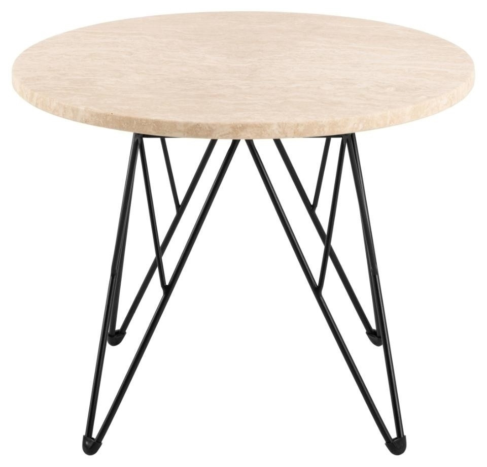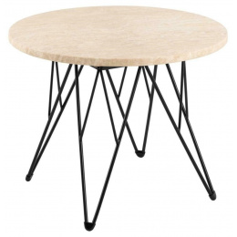 Okrúhly bočný stolík Prunus, doska z matného travertínu lakovaného na béžovo, základňa z drôtu z ocele práškovo lakovanej na čierno. Ten bočný stolík sa zapáči ako minimalistom, tak maximalistom. Vyznačuje sa efektnou doskou z travertínu, podopretou chrómovanou drôtenou základňou. Vyvážený kontrast medzi proporciami dodáva projektu ľahký pôvab. Ľahko sa prispôsobí každému štýlu interiéru. Hmotnosť stola: 14,4 kg. Max. zaťaženie 20 kg Rozmery kartónov: 14x66x77cm a 59,5x31x11cm
