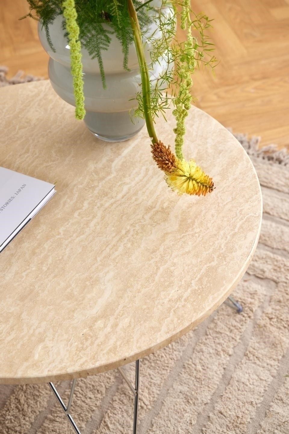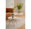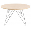 Okrúhly konferenčný stolík Prunus, doska z travertínu lakovaná na matnú béžovú, drôtená základňa z chrómovanej ocele. Tento konferenčný stolík sa zapáči ako minimalistom, tak maximalistom. Má efektnú dosku z travertínu, ktorá je podopretá na chrómovanom drôtenom podstavci. Vyvážený kontrast medzi proporciami dodáva projektu ľahký pôvab. Ľahko sa prispôsobí každému štýlu interiéru. Hmotnosť stolíka 30 kg. Rozmery kartónov: 14x87x100cm a 66x43x14,8cm