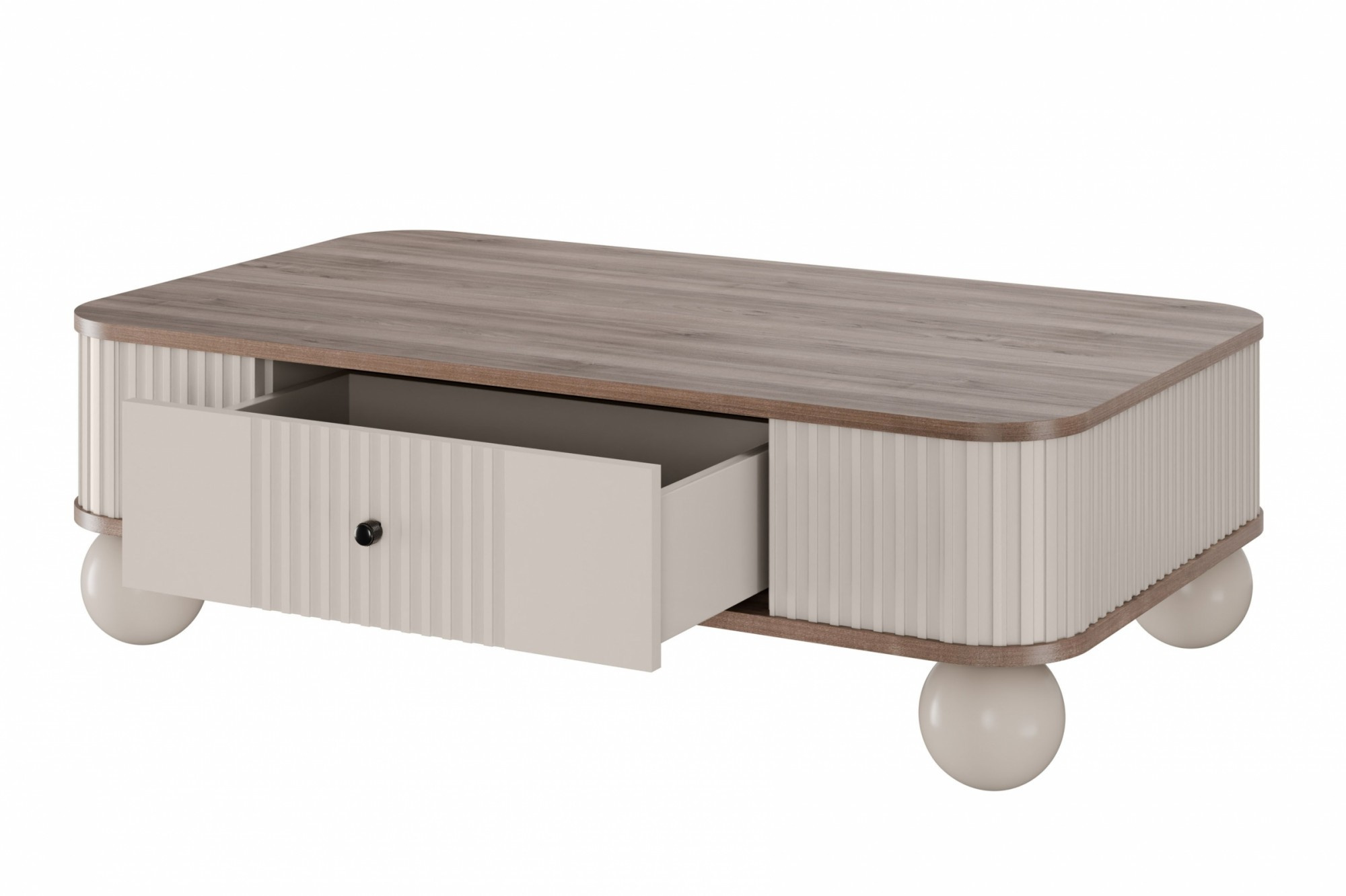 Konferenčný stolík so zásuvkou Vesper, kašmír / orech / čierne úchytky