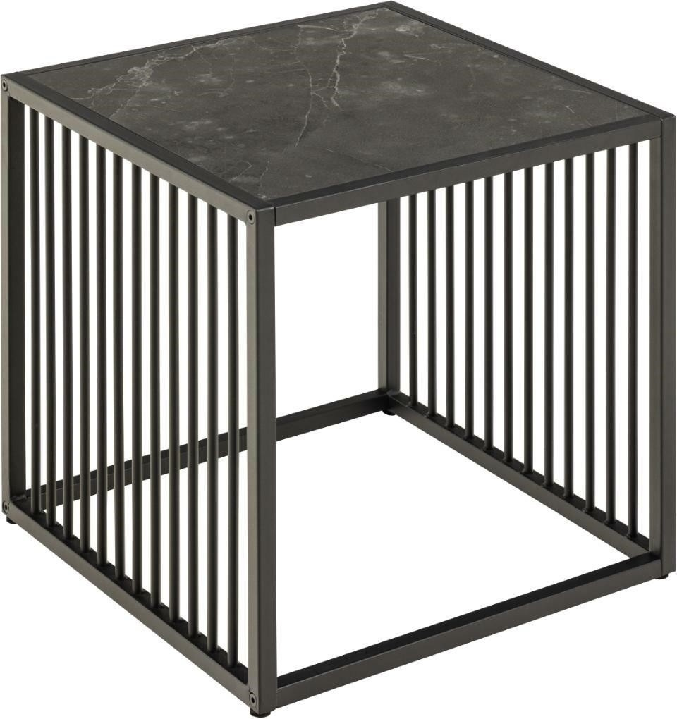 Štvorcový bočný stolík Strington, doska z MDF dosky a matnej čiernej melamínovej imitácie mramoru Izmir, drôtená základňa z matnej čiernej ocele s práškovým nástrekom. Kto by si pomyslel, že odkladací stolík môže byť taký skvelý. Taký dizajn ľahko urobí dojem v každom modernom dome. Čierny kovový rám je vybavený zvislými kovovými lamelami z 2 strán a doska očaruje vzhľadom čierneho mramoru. Stôl možno ozdobiť obľúbenou vázou alebo rastlinou, aby mu dodal osobitý charakter. Vyžaduje montáž. Max. zaťaženie 20 kg. Hmotnosť stolíka: 3,6 kg Rozmery kartónu: 47x43x6,5 cm