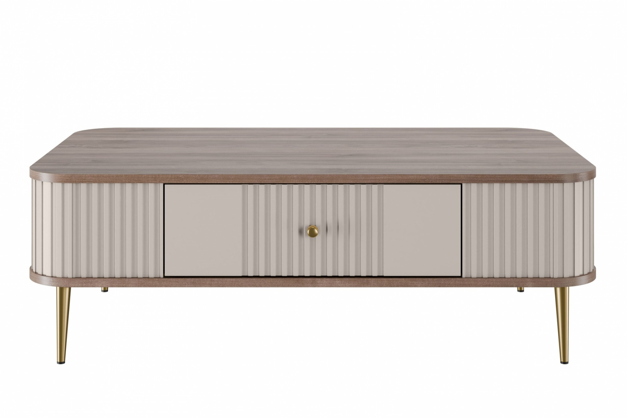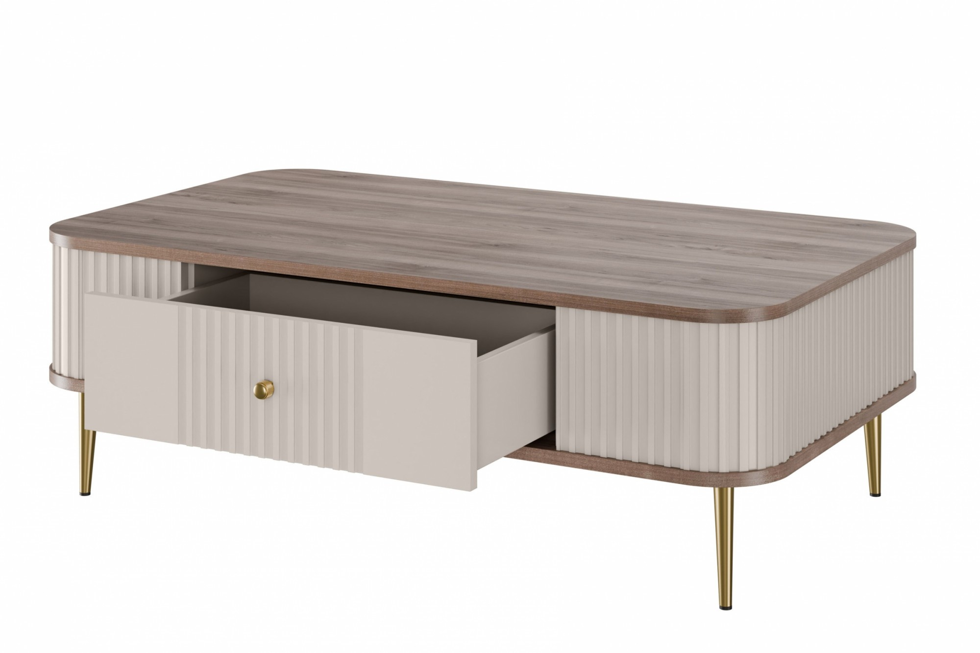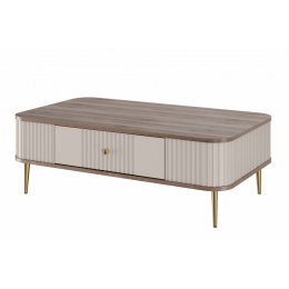 Konferenčný stolík so zásuvkou Vesper 103x60 cm - kašmír / orech / zlaté nohy, Šírka: 103, Výška: 35, Hĺbka: 60, Výška nôh: 15, Hĺbka dosky: , Montáž: