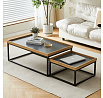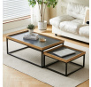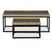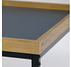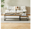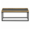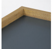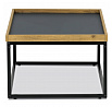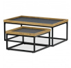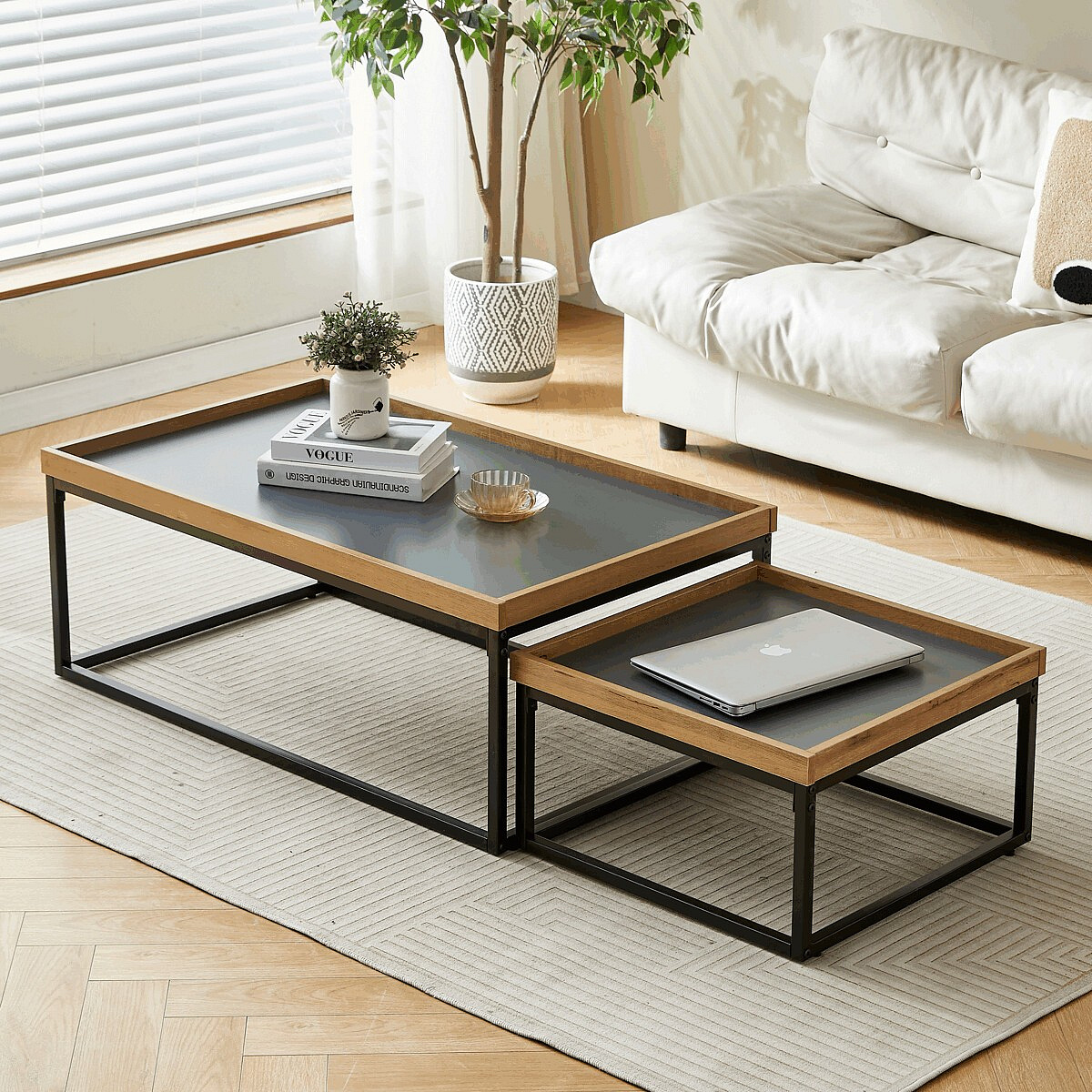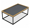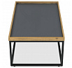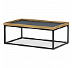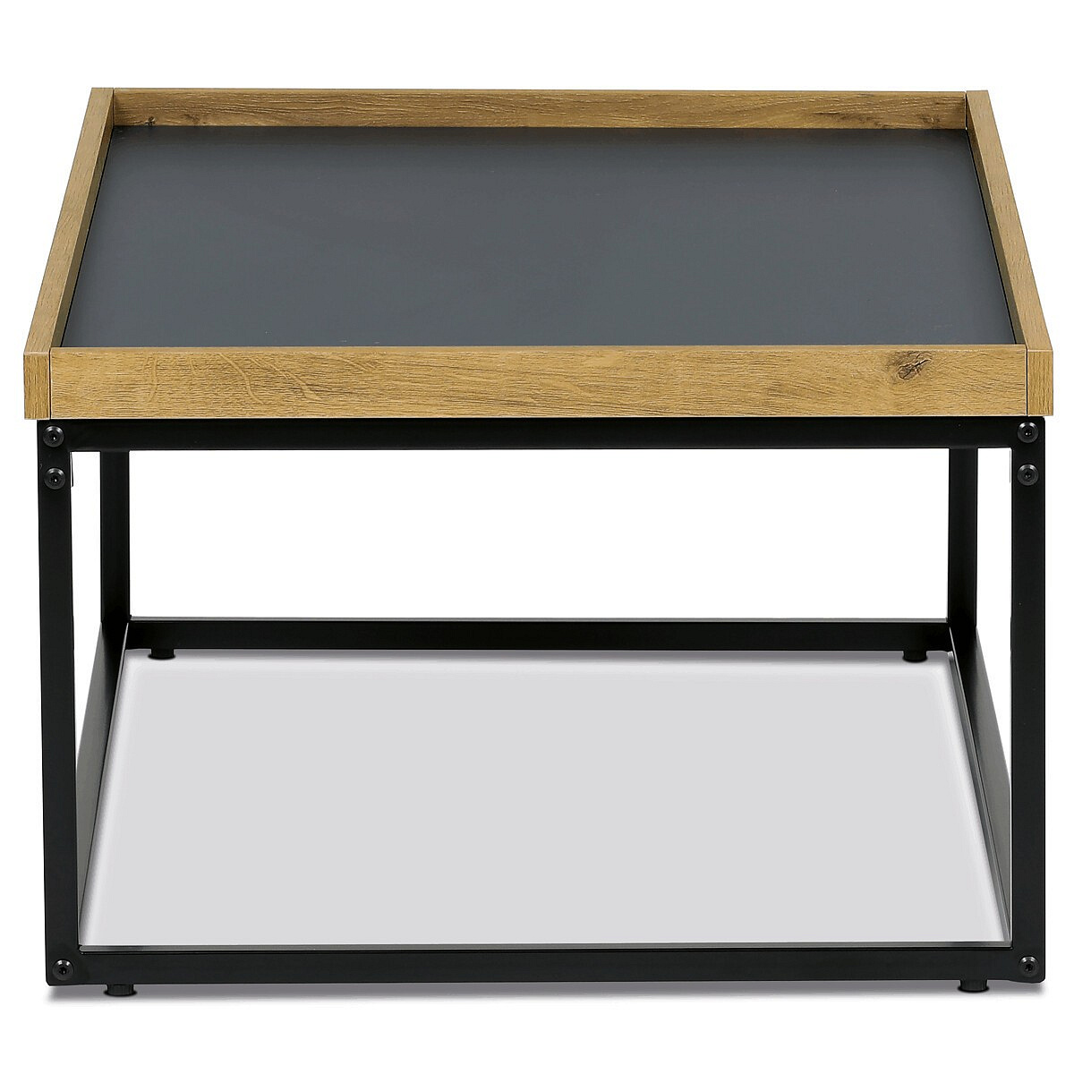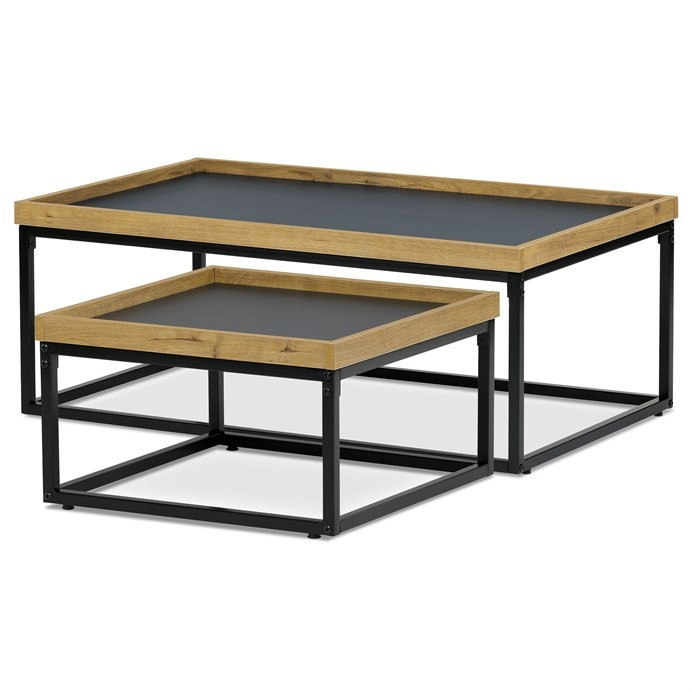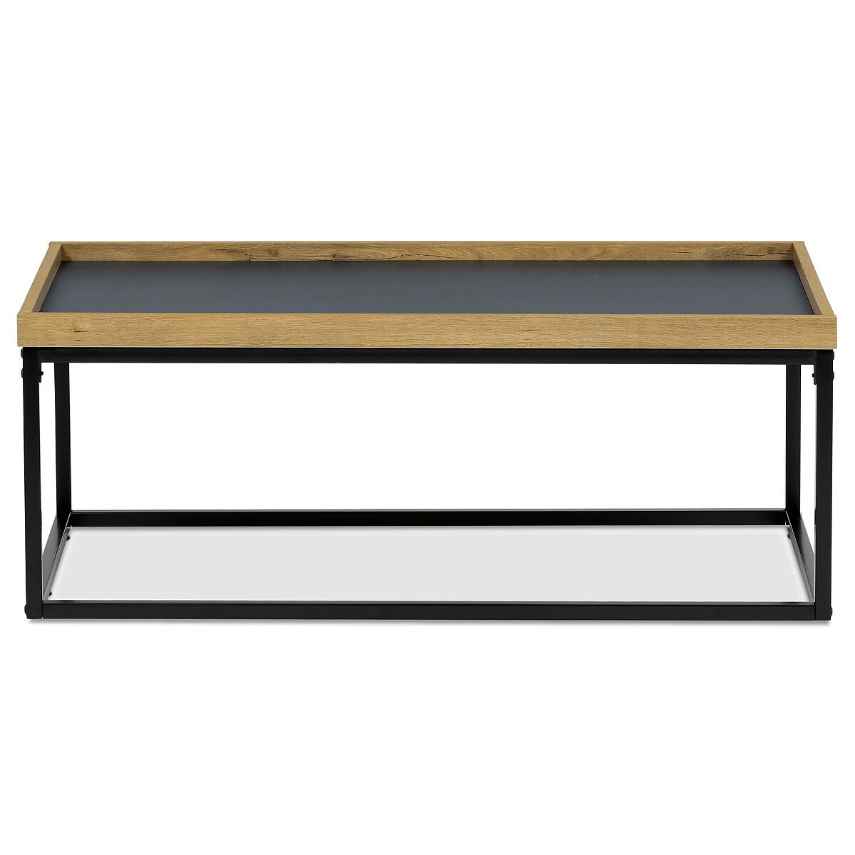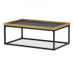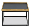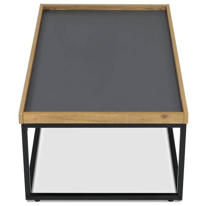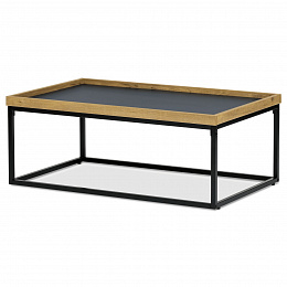 Konferenčný stolík, vrchná doska z MDF sivá s ozdobným okrajom divoký dub, čierny kov.