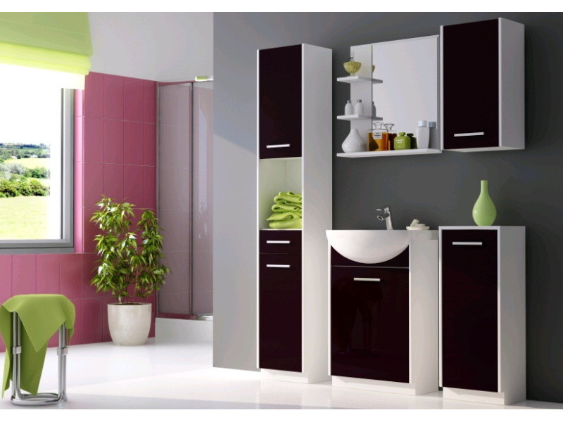 NANCY - kúpeľňový nábytok v bielej farbe s čielkami z MDF v troch farbách, odolný voči vlhkosti a vysokým teplotám. Umývadlo nie je súčasťou tejto súpravy, je potrebné ho objednať samostatne - SONATA 50.