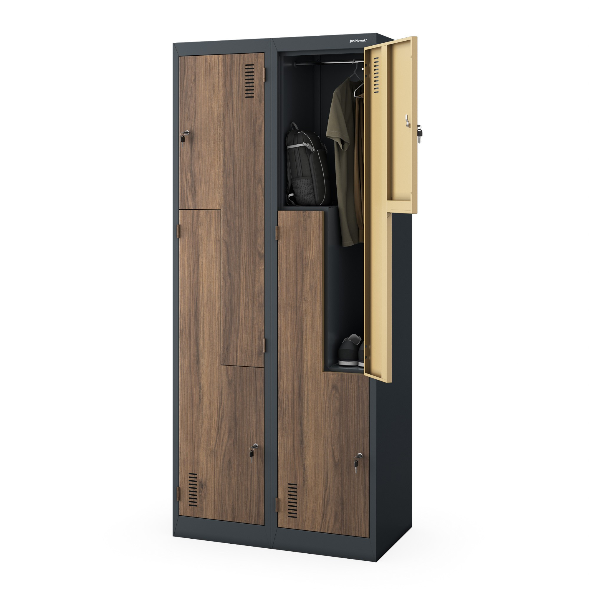 Kovová šatní skriňa JULIA, 800 x 1850 x 450 mm, Eco Design: antracitová/orech