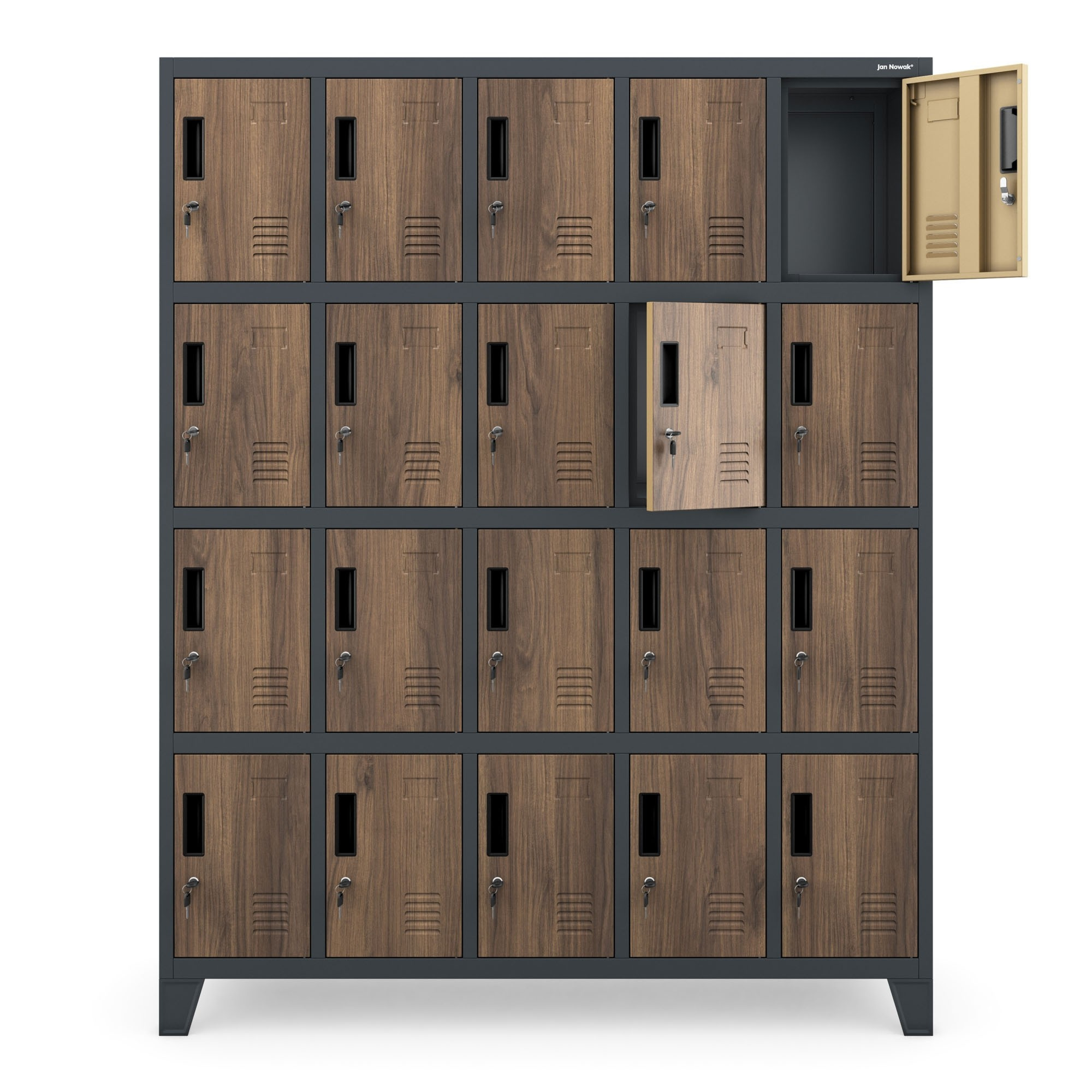 Kovová šatní skrinka BHP antracitová/orech: Eco Design ROBERT, 1360 x 1720 x 450 mm
