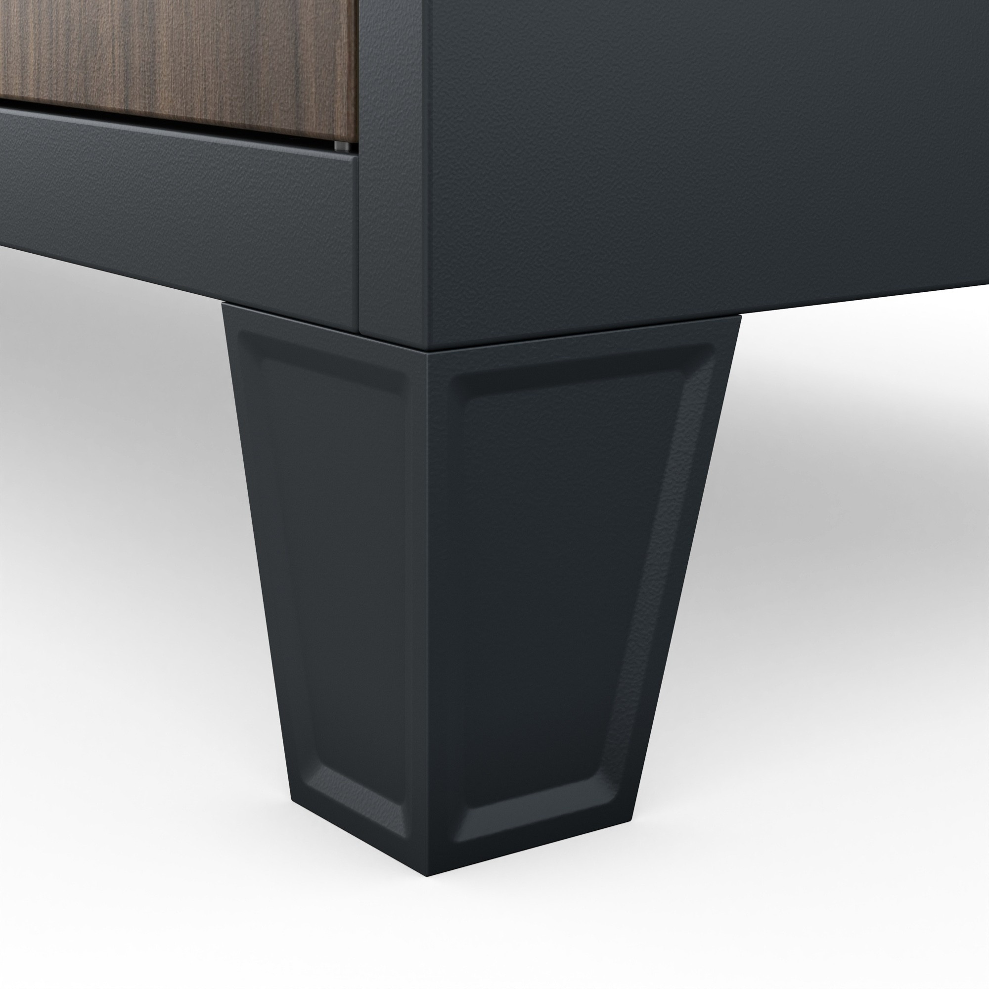 Skriňa ROBERT je navrhnutá s ohľadom na maximálne využitie priestoru a dlhú životnosť. Jej robustná oceľová konštrukcia zaručuje stabilitu a odolnosť proti poškodeniu, zatiaľ čo elegantná antracitová farba v kombinácii s dvierkami v dekore orechového dreva dodáva interiéru sofistikovaný vzhľad.