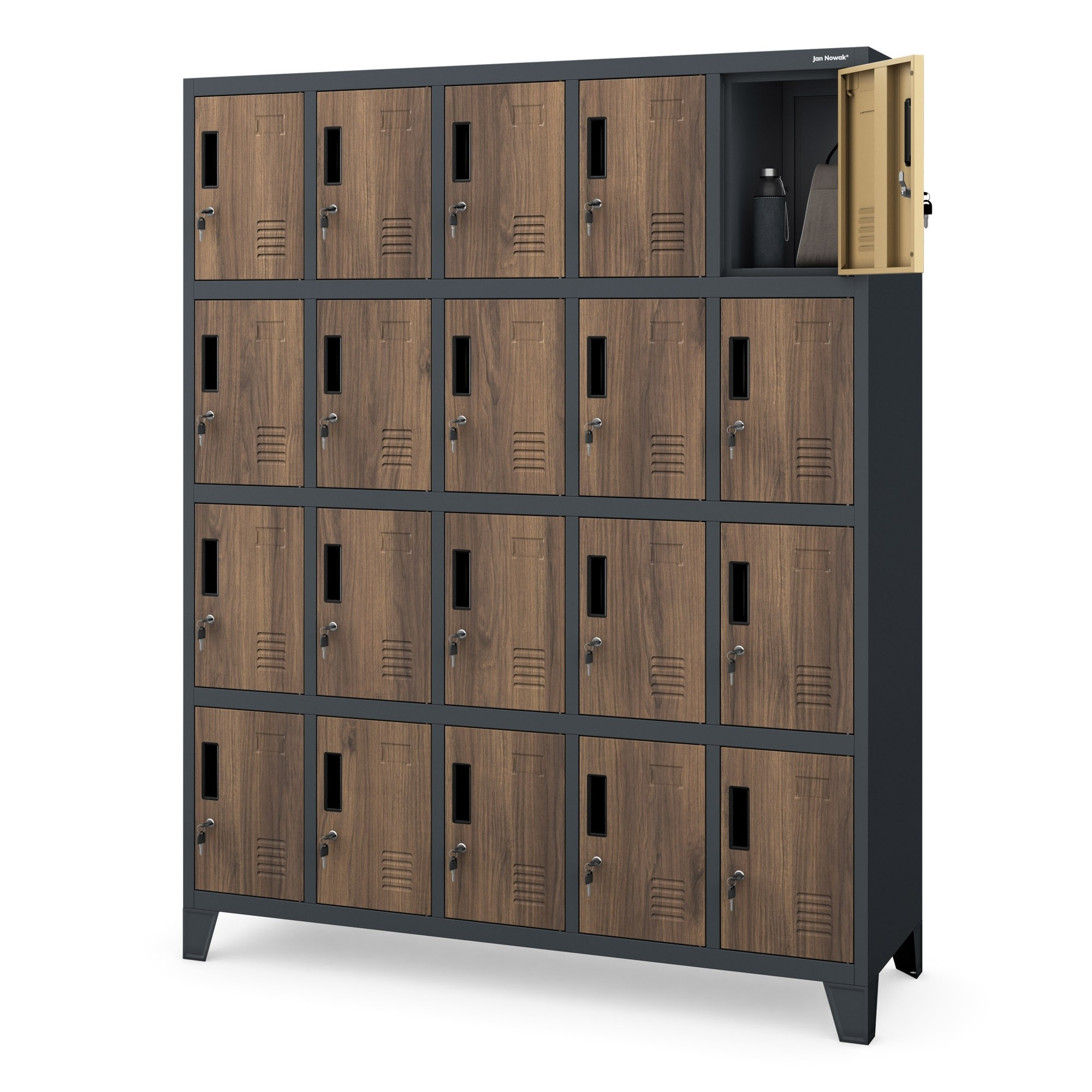 Skriňa ROBERT ponúka až 20 uzamykateľných schránok, ktoré poskytujú dostatok priestoru na uloženie osobných vecí, športového vybavenia, pracovných pomôcok alebo školských potrieb. Každá schránka je dostatočne priestranná, aby sa do nej zmestil batoh, taška, peňaženka, knihy, topánky alebo desiata.