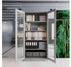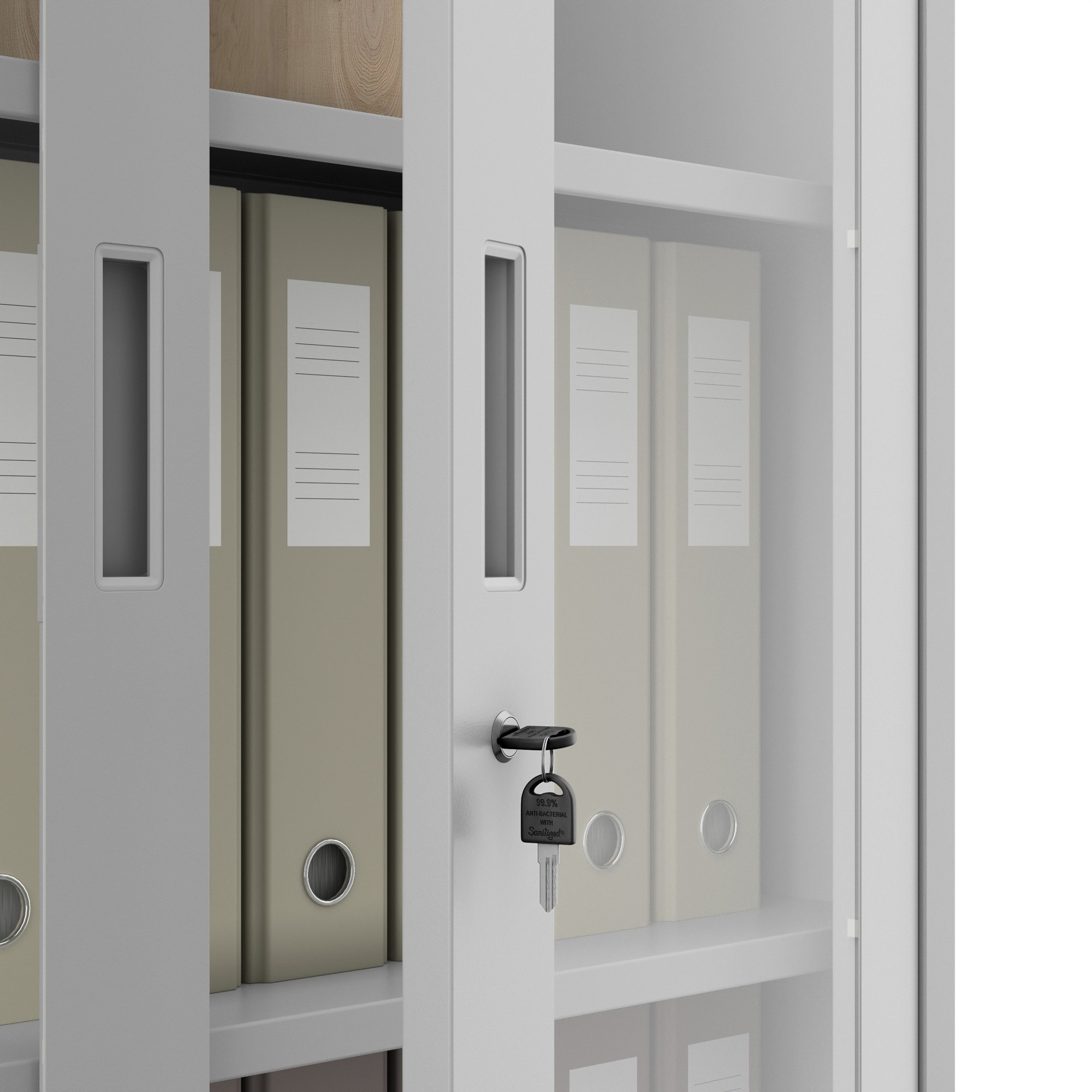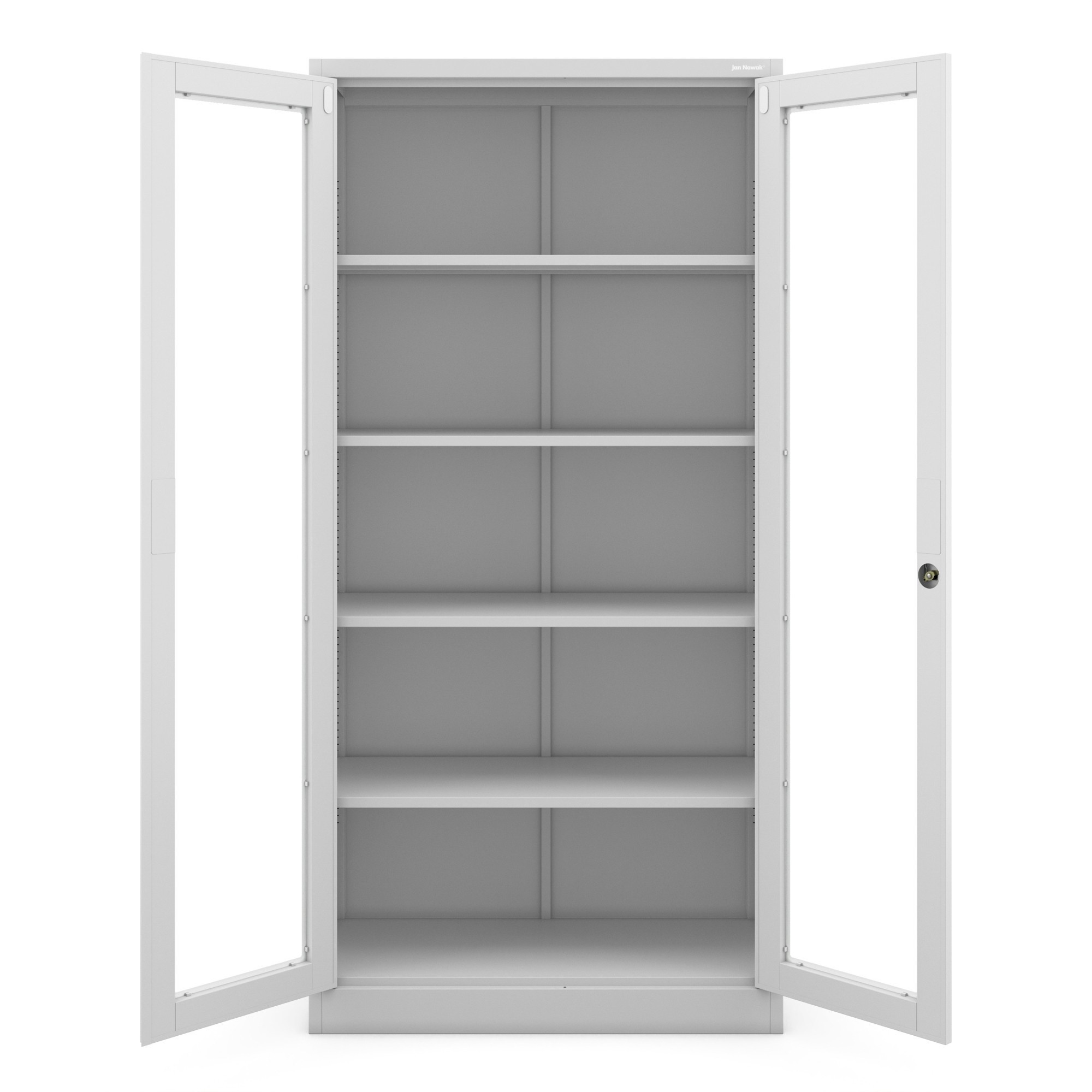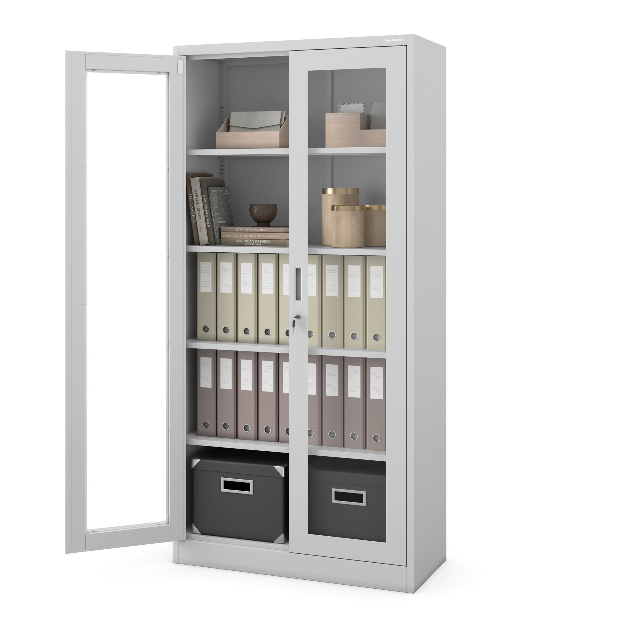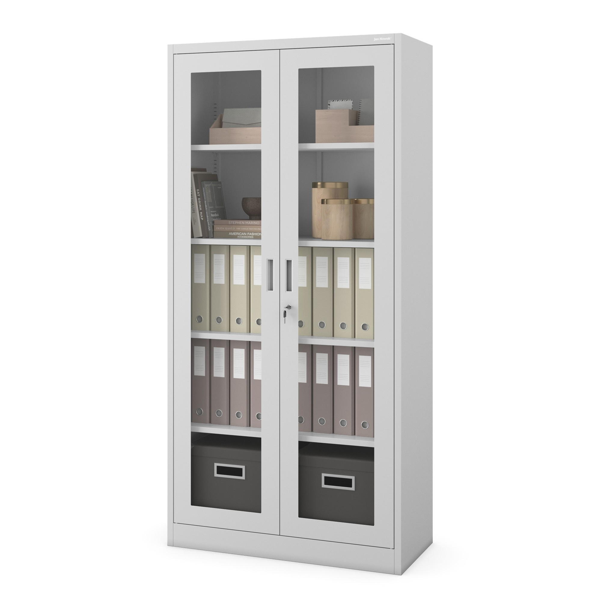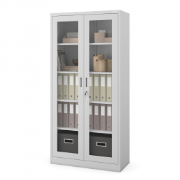 - Estetický dizajn: Jednoduchý a elegantný dizajn v šedej farbe (RAL 7035) sa hodí do každého interiéru. Presklené dvere dodávajú skrini ľahkosť a umožňujú jednoduchú identifikáciu uložených predmetov.