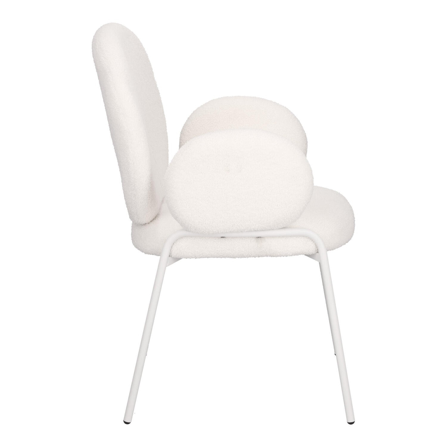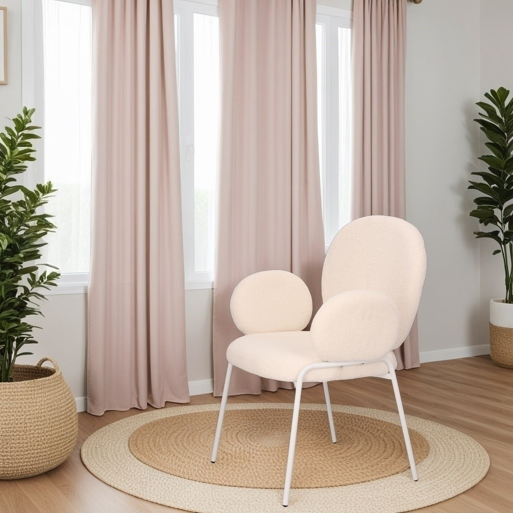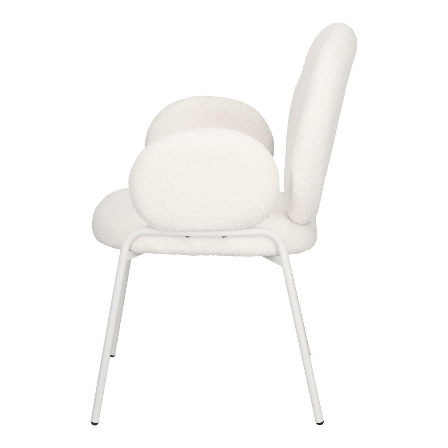 Štýlová stolička Bianco v boho štýle so štyrmi kovovými nohami lakovanými práškovou farbou na bielo bude kvintesenciou módnej a svetlej obývačky. Čalúnené látkou bouclé, ktorá je mäkká a štýlová, poskytuje výnimočný komfort a eleganciu. Ideálne do interiérov v prírodnom štýle so svetlým alebo béžovým prevedením. Stolička Bianco spája funkčnosť s estetikou. Dokonale sa hodí do obývacej izby, jedálne alebo spálne, kde navodí teplú, útulnú atmosféru. Veľmi pohodlná stolička Bianco je ideálna pre dlhé sedenie a relaxáciu pri stole s rodinou alebo priateľmi. Vyžaduje montáž. Max. zaťaženie 120 kg Nestohovateľné Nevhodné pre vonkajšie použitie