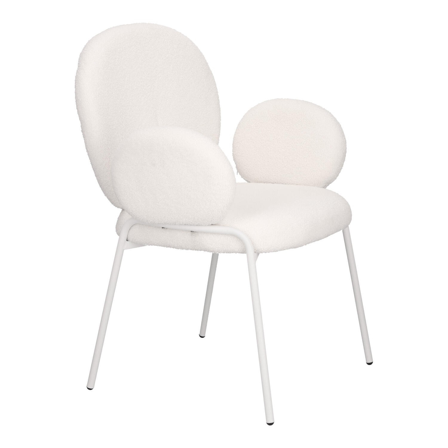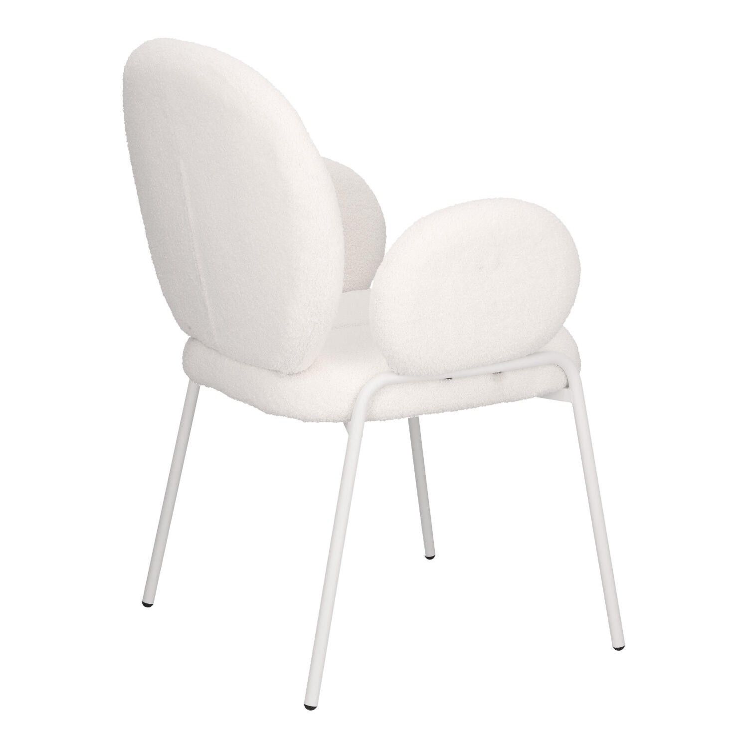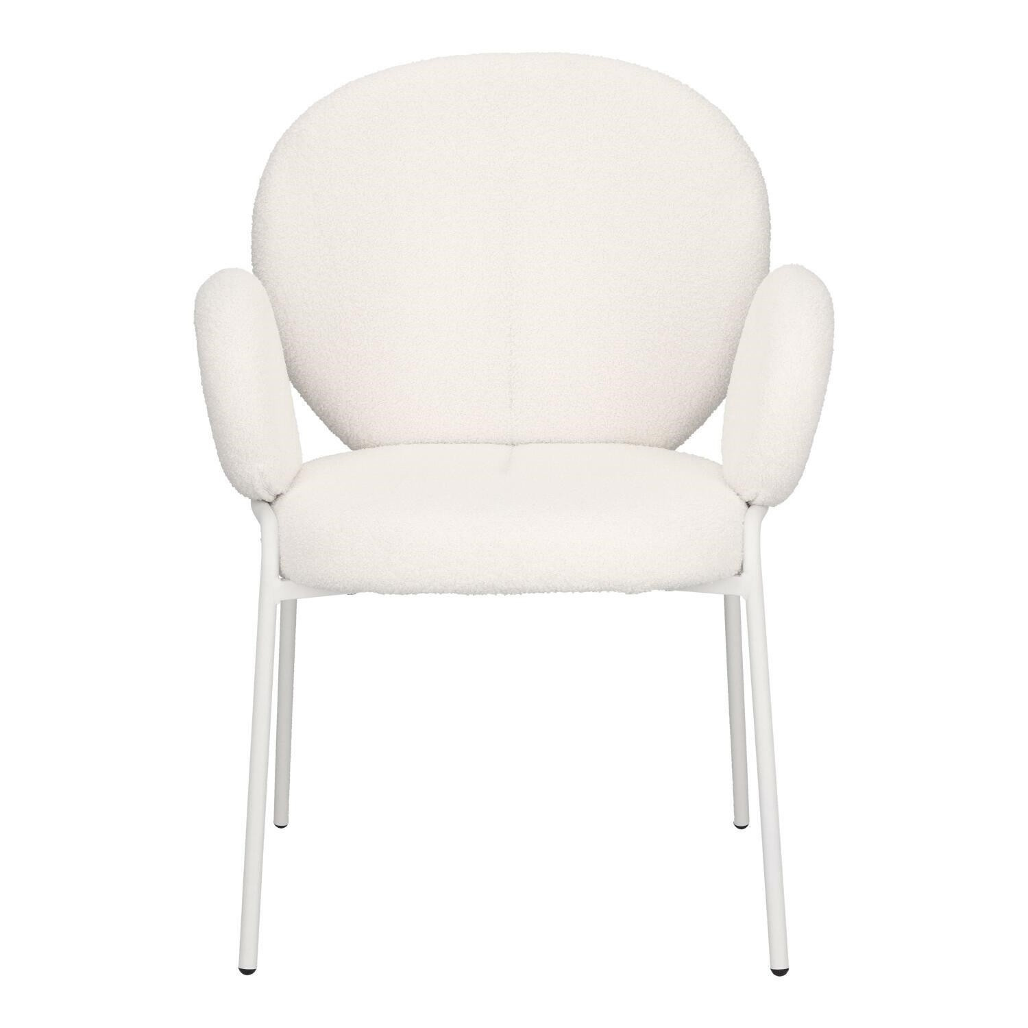 Štýlová stolička Bianco v boho štýle so štyrmi kovovými nohami lakovanými práškovou farbou na bielo bude kvintesenciou módnej a svetlej obývačky. Čalúnené látkou bouclé, ktorá je mäkká a štýlová, poskytuje výnimočný komfort a eleganciu. Ideálne do interiérov v prírodnom štýle so svetlým alebo béžovým prevedením. Stolička Bianco spája funkčnosť s estetikou. Dokonale sa hodí do obývacej izby, jedálne alebo spálne, kde navodí teplú, útulnú atmosféru. Veľmi pohodlná stolička Bianco je ideálna pre dlhé sedenie a relaxáciu pri stole s rodinou alebo priateľmi. Vyžaduje montáž. Max. zaťaženie 120 kg Nestohovateľné Nevhodné pre vonkajšie použitie