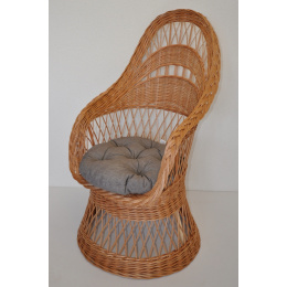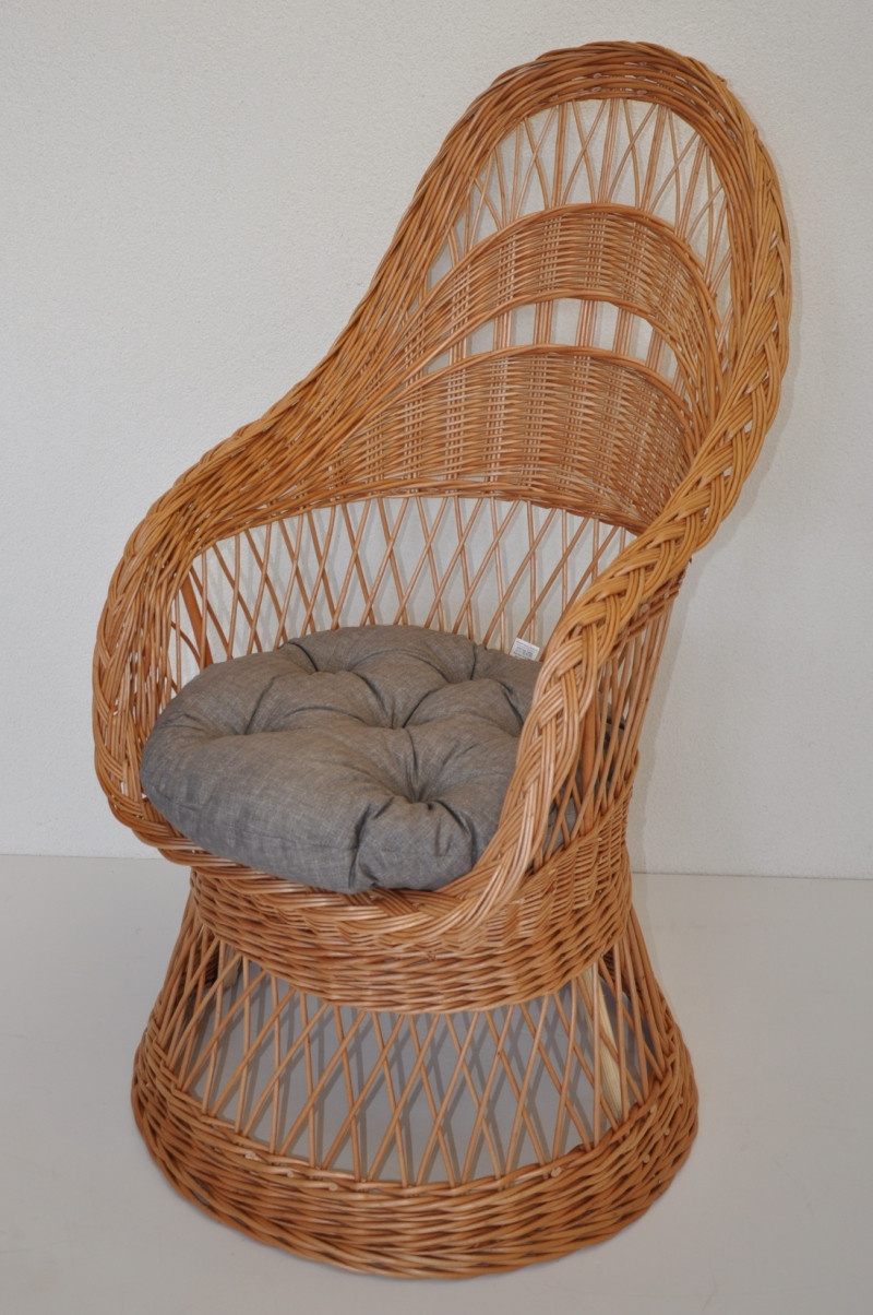 Kreslo Elizabeth z prírodného vŕbového prútia. ..... | Konštrukcia kresla Elizabeth je vyrobená zo silných vŕbových prútov, výplet je z vŕbových prútov. Rozmery stoličky sú 59x70x110 cm. Výška sedadla stoličky je 42 cm. Nosnosť stoličky je 110 kg. Vankúš na stoličku je vyrobený v Českej republike. Vankúš je vyrobený z kvalitnej tkaniny a vyznačuje sa vysokou kvalitou spracovania. Vankúše pre nás vyrába spoločnosť AXIN Cuschions s.r.o., ktorá zamestnáva výlučne miestne vyškolené krajčírky z Českej republiky. Týmto spôsobom sa snažíme podporovať výrobu a zamestnanosť v našej krajine. .....
