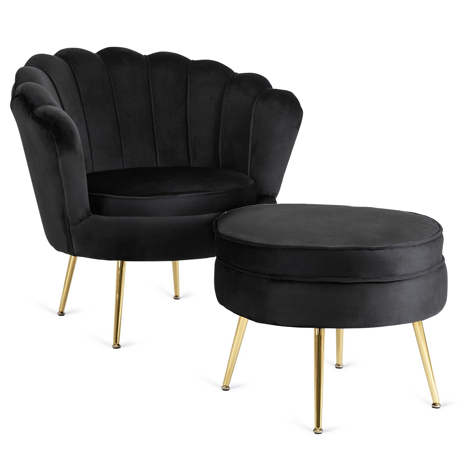 Kreslo GRAND s Podnožkou Čierny Zamatový