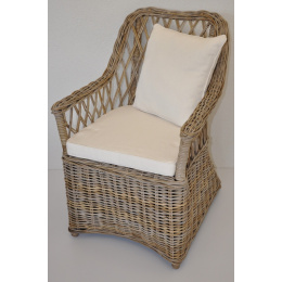 Kreslo Maros má konštrukciu vyrobenú z masívnych ratanových tyčí ratanu kubu.Výplet je tvorený ratanom kubu v prírodnej šedej farbe. | Materiál: prírodný ratan kubu v prírodnej šedej farbe. Ratan kubu sa vyznačuje veľkou pevnosťou a odolnosťou. Kreslo má vďaka tomu veľmi pevnú konštrukciu. Veľkosť kresla je 60x67x89 cm, výška sedu je 50 cm, nosnosť 125 kg.