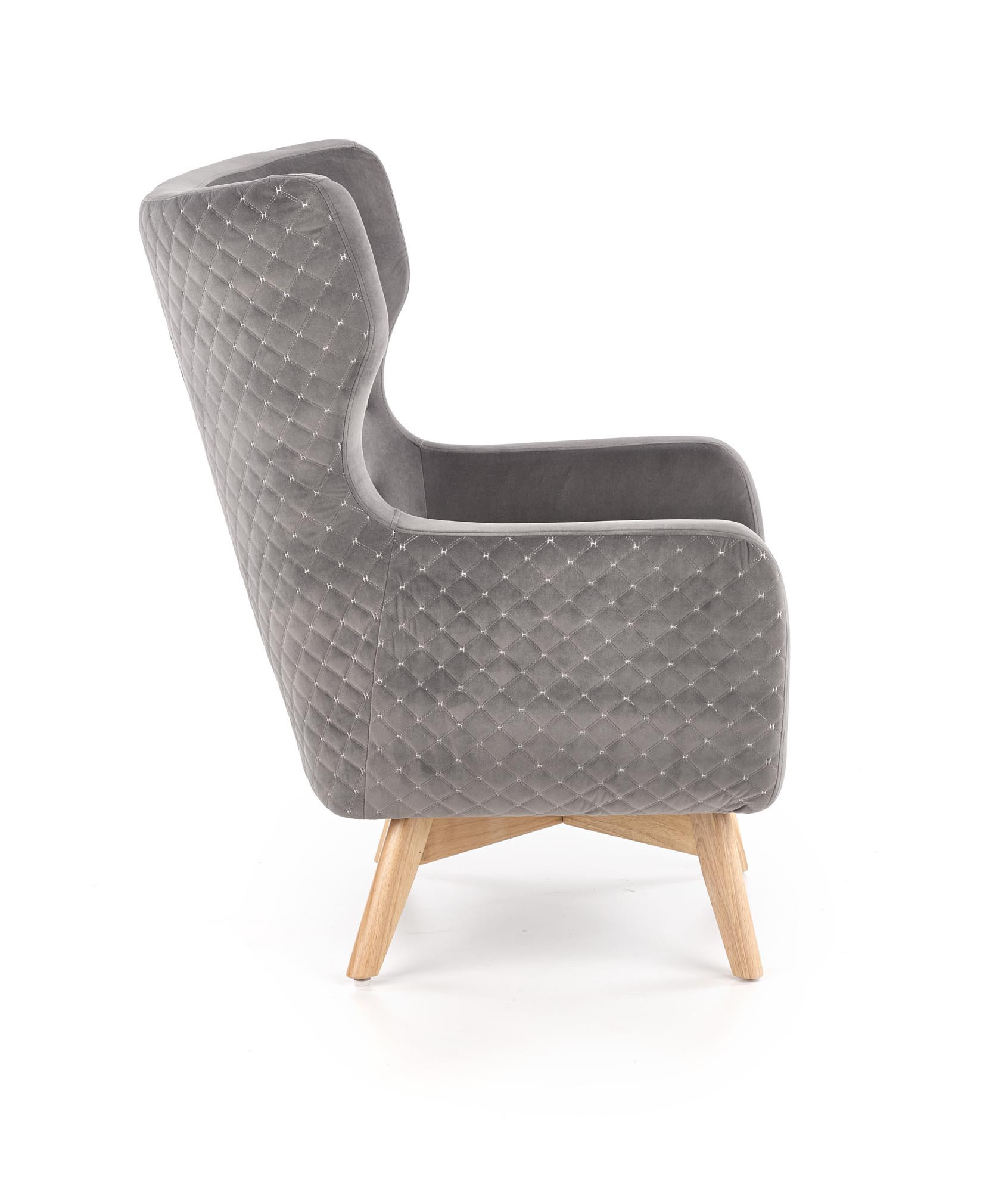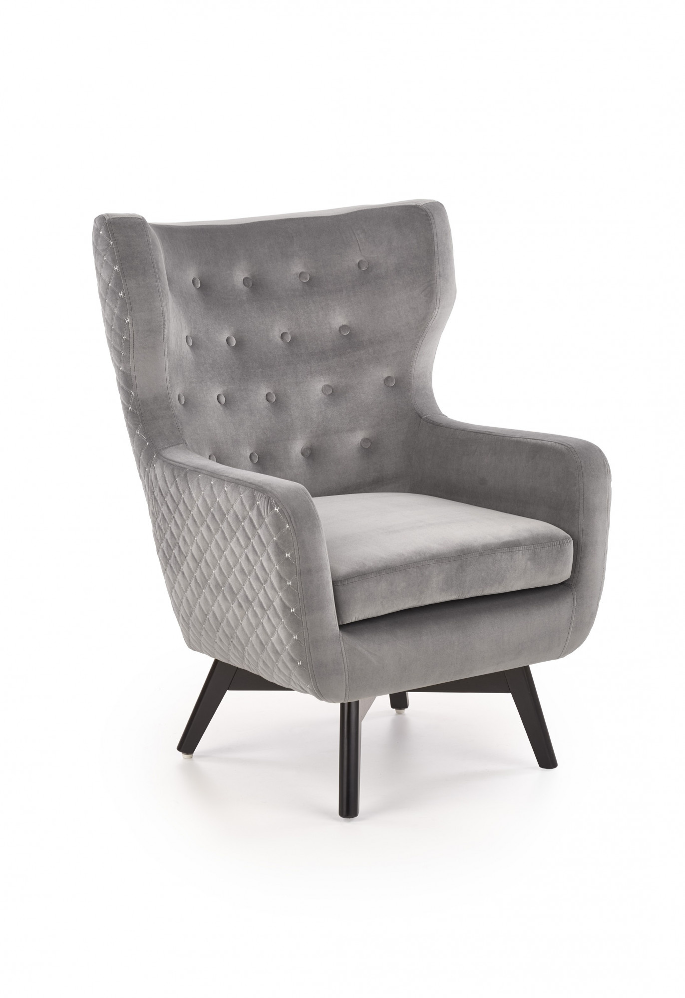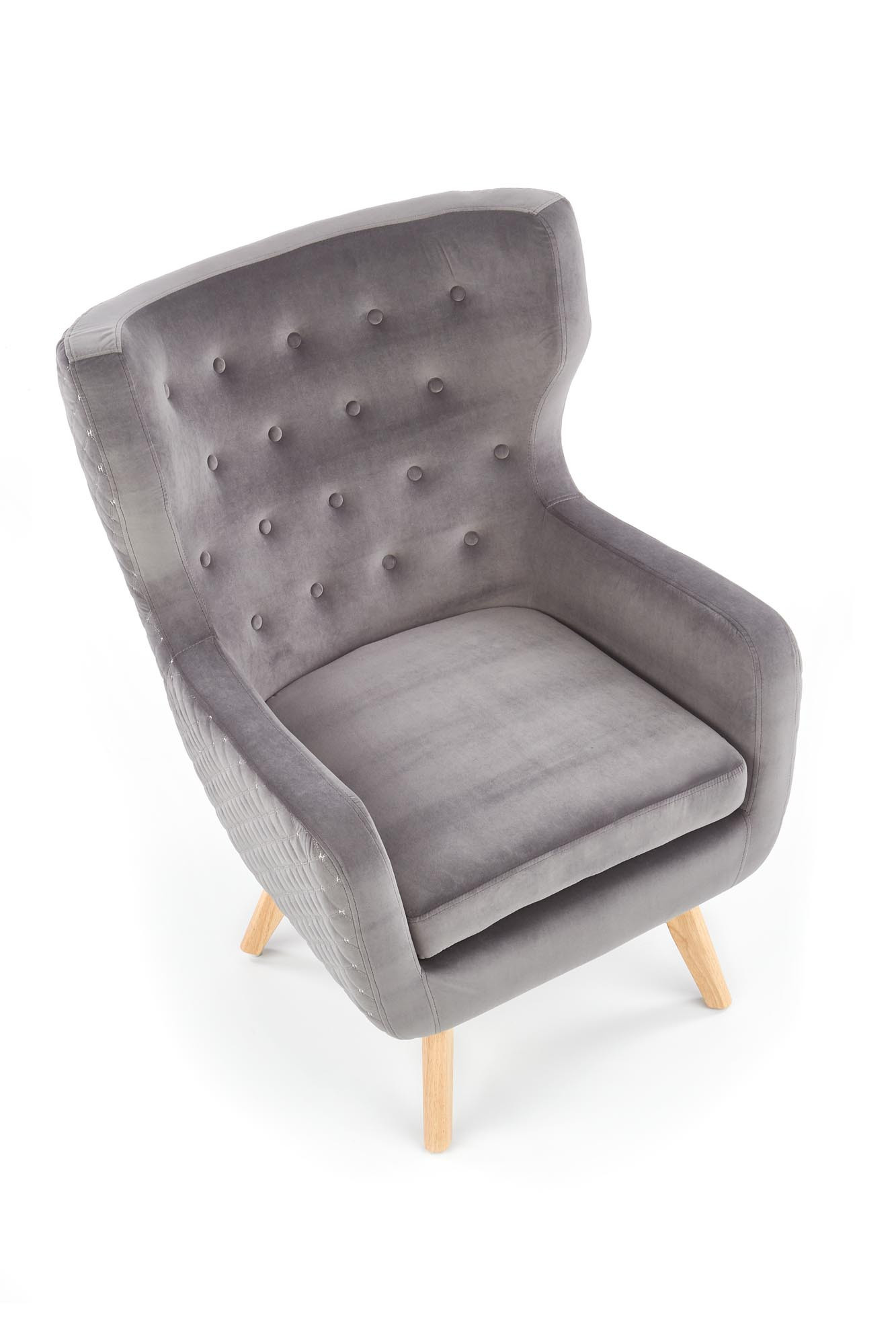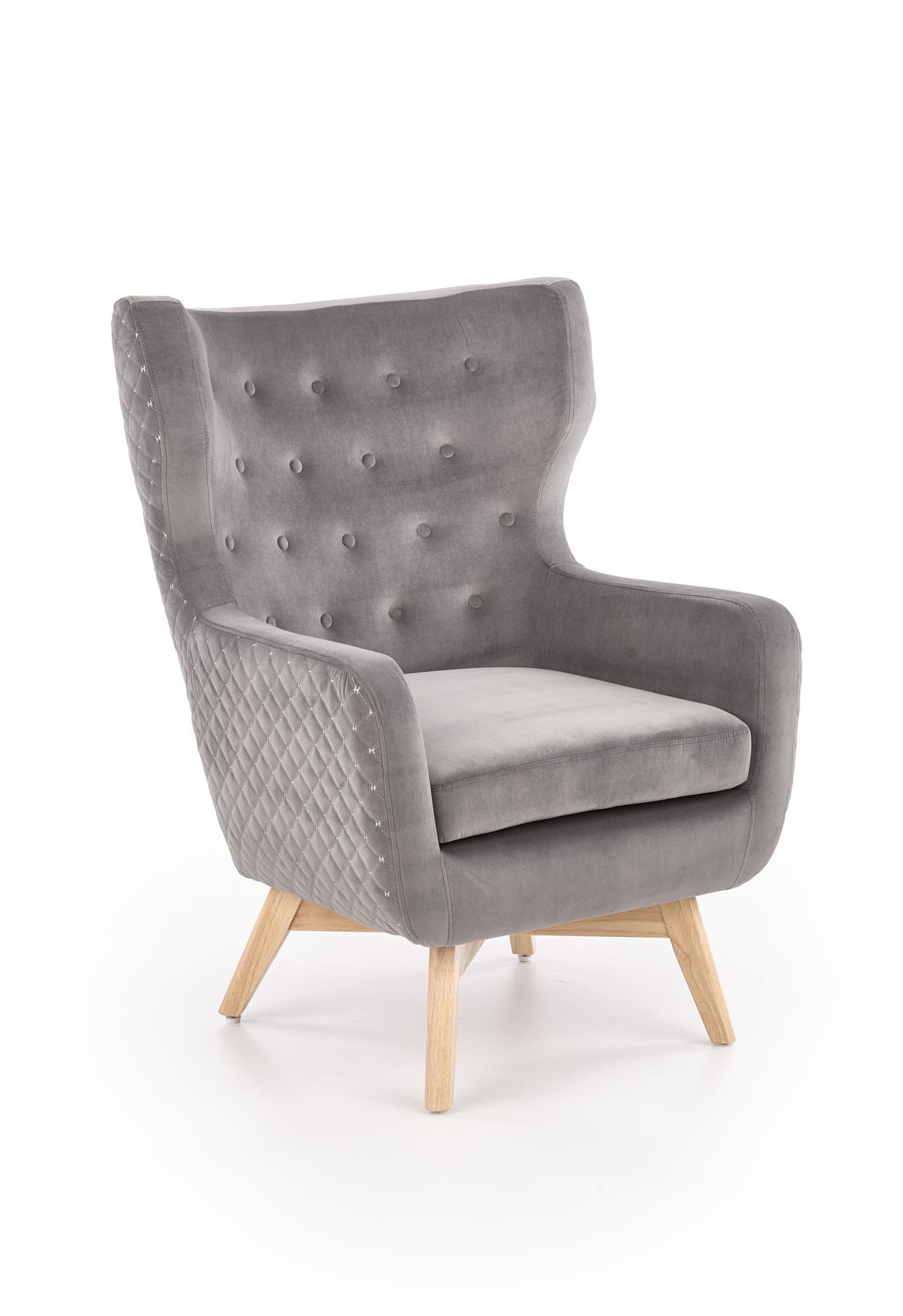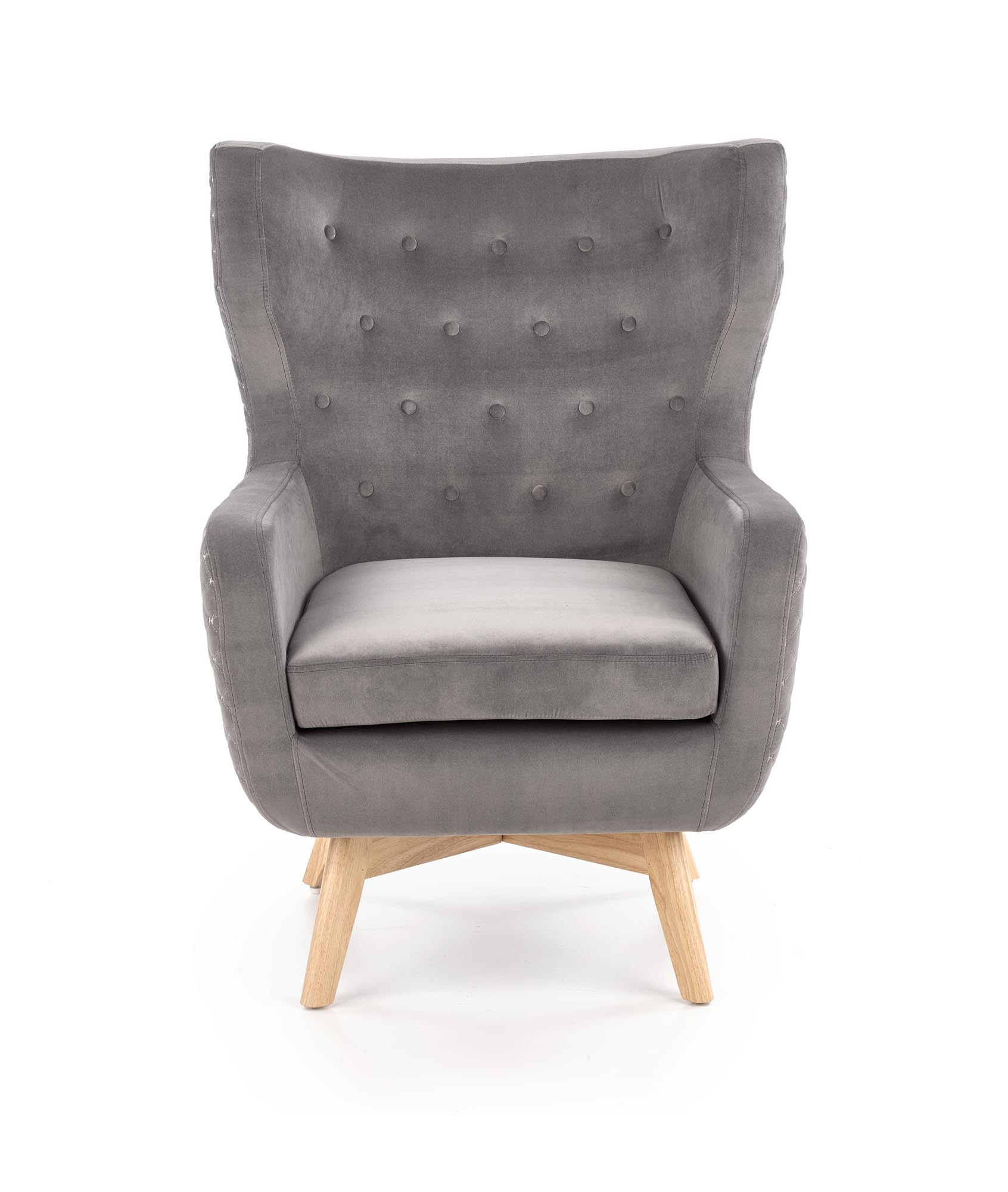 rozmery: 75/83/103/50 cm, materiál: látka / masívne drevo, farba: čalúnenie - sivá, nohy - čierne