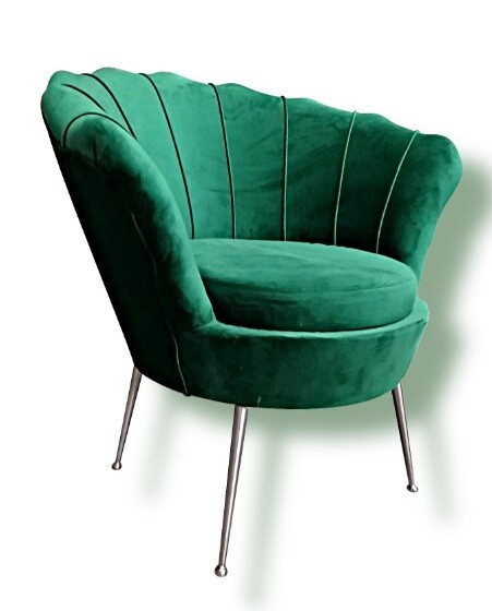 Lounge kreslo s módnym operadlom s prešívaním v tvare mušle.
