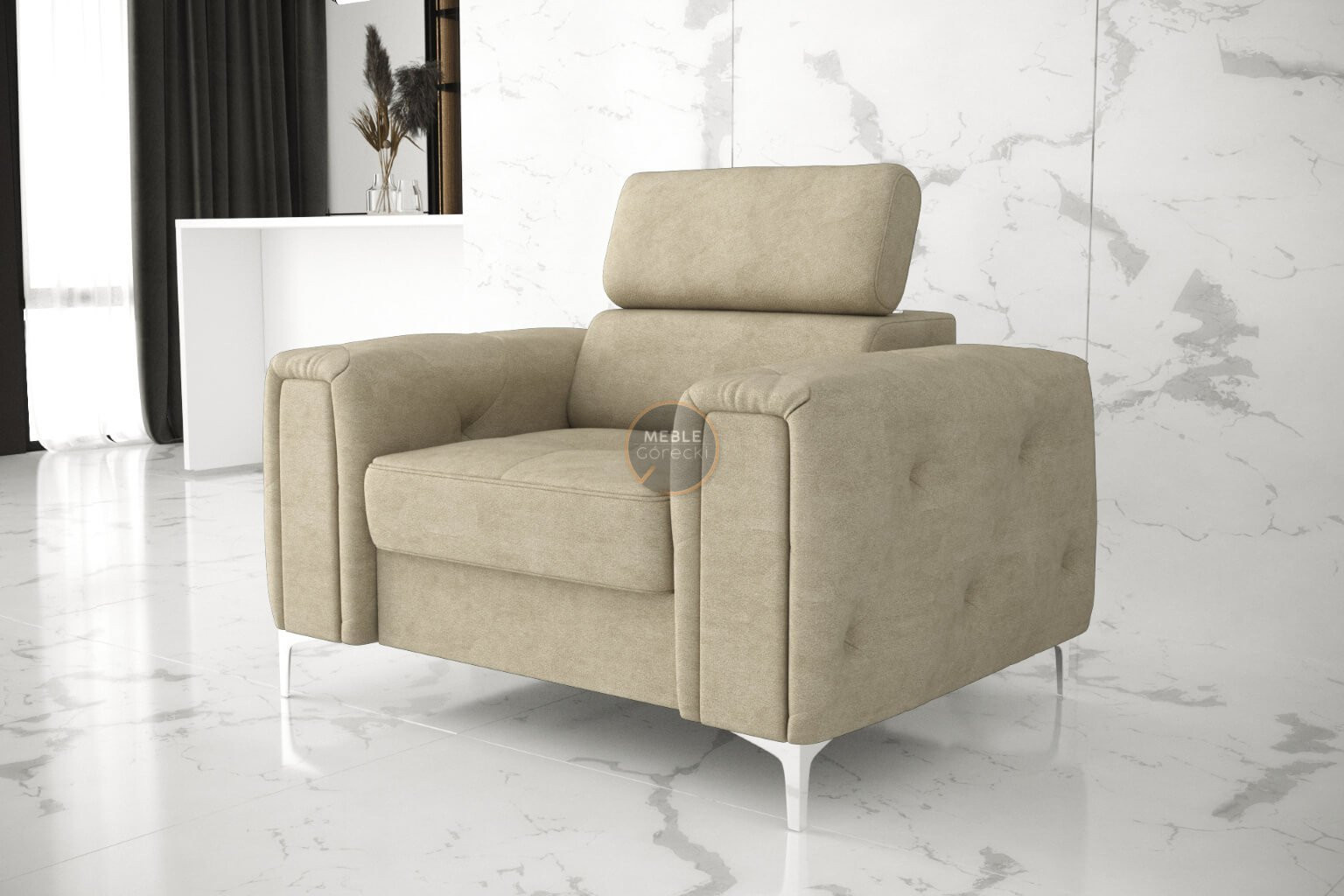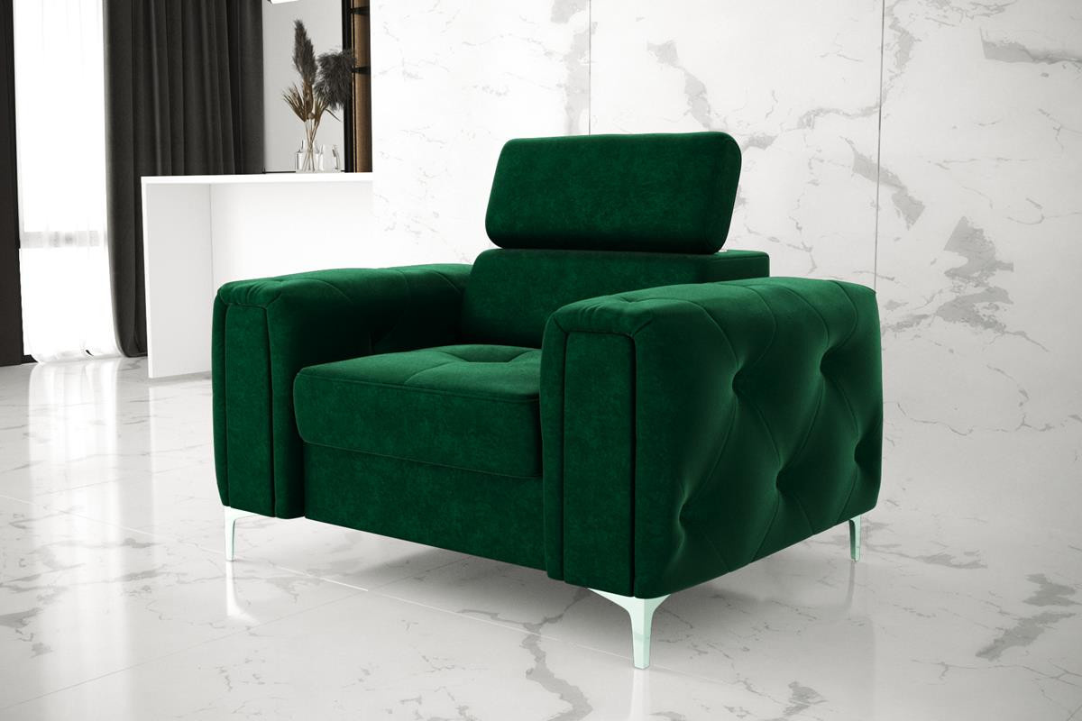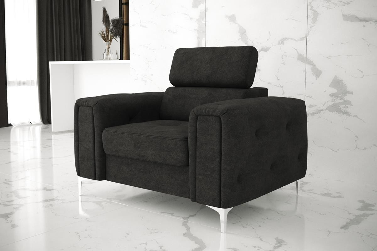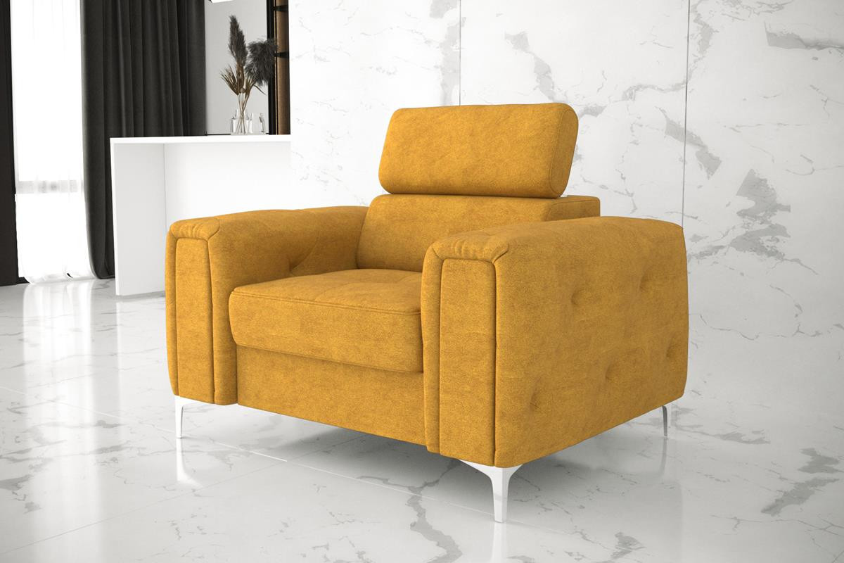 Kolekcia čalúneného nábytku Orion je niečo, čo nikde inde nenájdete! Charakteristickým prvkom sú krásne zdobené, prešívané boky v štýle glamour. Okrem estetických prvkov stojí za to venovať pozornosť dokončeniu v podobe nastaviteľných opierok hlavy, ktoré uľahčia prispôsobenie výšky operadla tak, aby bola pre vás ideálna. Vysoké 13 cm kovové nohy podčiarkujú celok a dodávajú konštrukcii ľahkosť.