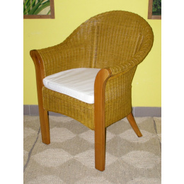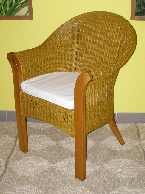 Kreslo s konštrukciou z mahagónového dreva a výpletom z prírodného ratanu. | Farba ratanového výpletu je medová. Veľkosť kresla je 69x68x90 cm. Výška sedu je 51 cm.