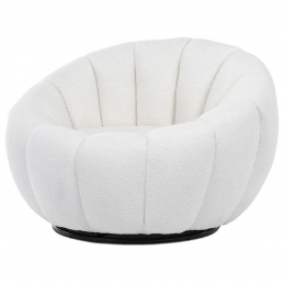 Kreslo relaxačné látka biele Bouclé otočné