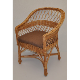 Kreslo San z prírodného vŕbového prútia...... | Konštrukcia kresla San je vyrobená zo silných vŕbových prútov, výplet je z vŕbových prútov. Rozmery stoličky sú 62x63x82 cm. Výška sedadla stoličky je 42 cm. Nosnosť stoličky je 100 kg. Vankúš na stoličku je vyrobený v Českej republike. Vankúš je vyrobený z kvalitnej tkaniny a vyznačuje sa vysokou kvalitou spracovania. Vankúše pre nás vyrába spoločnosť AXIN Cuschions s.r.o., ktorá zamestnáva výlučne miestne vyškolené krajčírky z Českej republiky. Týmto spôsobom sa snažíme podporovať výrobu a zamestnanosť v našej krajine......