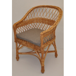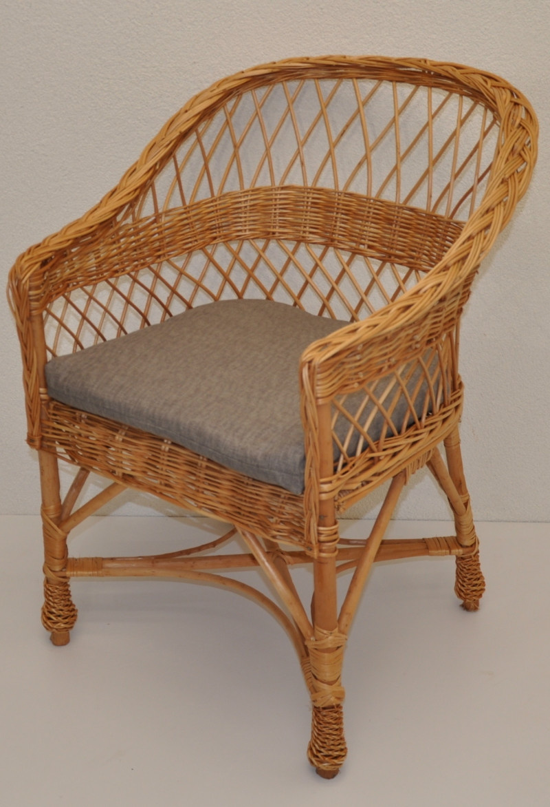 Kreslo San z prírodného vŕbového prútia...... | Konštrukcia kresla San je vyrobená zo silných vŕbových prútov, výplet je z vŕbových prútov. Rozmery stoličky sú 62x63x82 cm. Výška sedadla stoličky je 42 cm. Nosnosť stoličky je 100 kg. Vankúš na stoličku je vyrobený v Českej republike. Vankúš je vyrobený z kvalitnej tkaniny a vyznačuje sa vysokou kvalitou spracovania. Vankúše pre nás vyrába spoločnosť AXIN Cuschions s.r.o., ktorá zamestnáva výlučne miestne vyškolené krajčírky z Českej republiky. Týmto spôsobom sa snažíme podporovať výrobu a zamestnanosť v našej krajine......